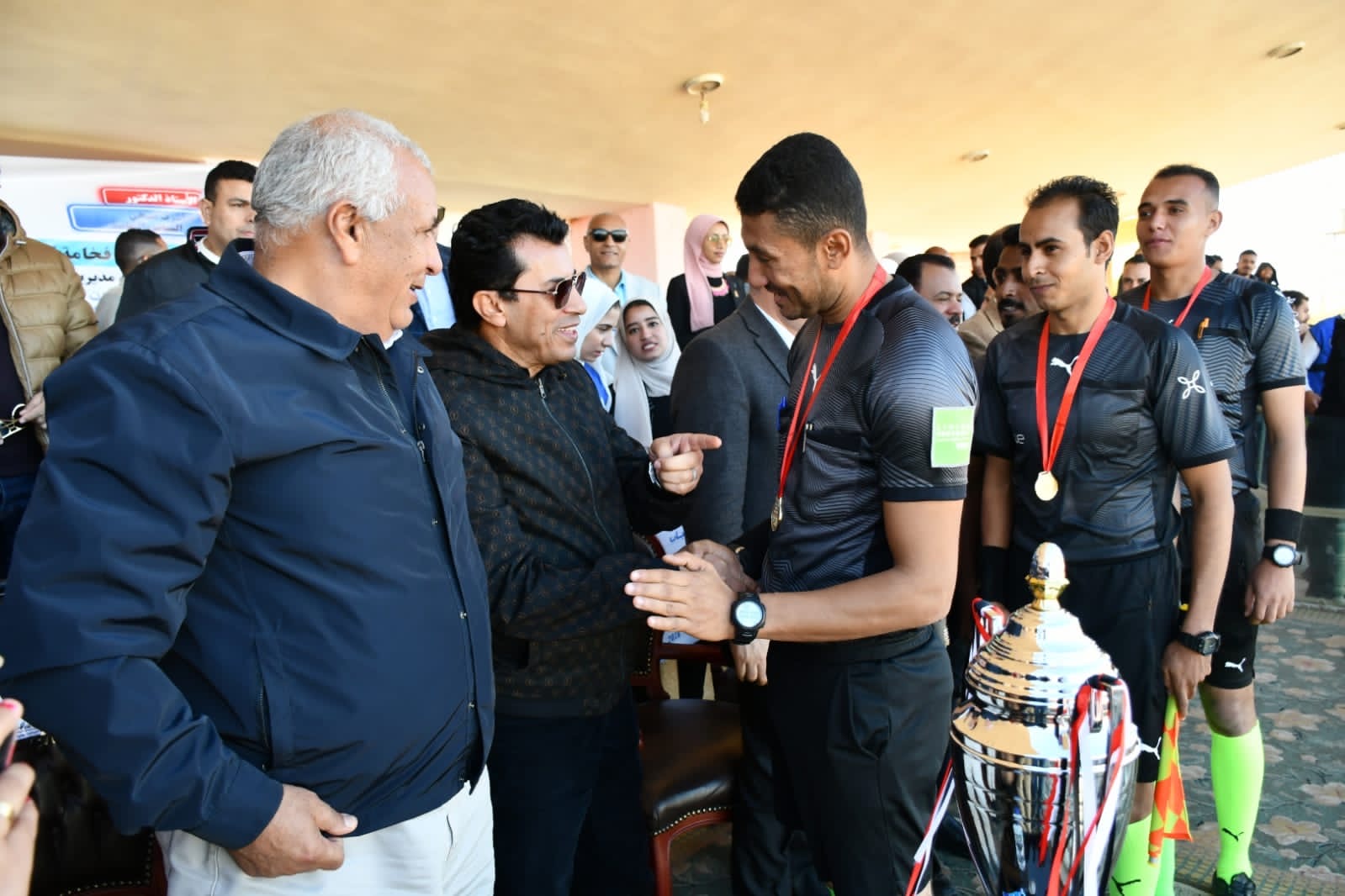 من جانبه، محافظ الوادي الجديد أن المحافظة تولي اهتماماً كبيراً بقطاع الشباب والرياضة، ولا تألوا جهدا في تقديم كامل الدعم والمساندة للقطاع لدوره الهام في تشكيل الوعي والوجدان لدى الشباب باعتبارهم القوه الفعالة لبناء وتنمية المجتمع والذي يتفق تماماً مع رؤية فخامة الرئيس عبد الفتاح السيسي رئيس الجمهورية لبناء الإنسان، مشيدًا بأداء  للفريقين والذي اتسم بالندية والروح الرياضية العالية.