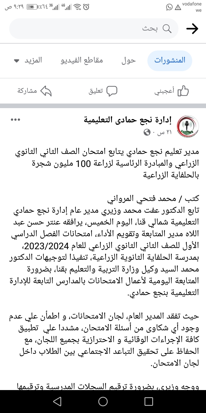 اثار بيان صادر عن إدارة نجع حمادى التعليمية شمال محافظة قنا، أمس الخميس، الدهشة، والذى جاء بعنوان مدير تعليم نجع حمادي يتابع امتحان الصف الثاني الثانوي الزراعي والمبادرة الرئاسية لزراعة 100 مليون شجرة بالحلفاية الزراعية، اثارة الدهشة جاءت بسبب حجم الأشجار التى يوحى العنوان وكذا باقى البيان بزراعتة فى المدرسة الزراعية، ويشرف على زراعتها مدير الإدارة التعليمية وفقاً لما هو مذكور فى البيان، فى وقتا تواجه فيه المدرسة تهمة إهدار للمال العام تقدر 40 مليون جنيها، هى تكلفة إنشاء المدرسة التى لم يتم استغلال المبانى والمنشآت بداخلها إلى الآن، وسبق للوفد ان تبنت مشكلتها فى عدم زراعة المساحة المخصصة للمدرسة حتى الآن، والتى تقدر ب ٤٠ فدانا، جرى تخصيصها لزراعة لتكون بمثابة حقل تجارب لطلاب المدرسة الزراعية بالحلفاية بحرى، بالإضافة لما تواجهه المدرسة من تعطيل باقى المبانى المحلقة بها من معامل وعنابر ومبانى مخصصة لتدريب والتربية الحيوانية وغيرها .
