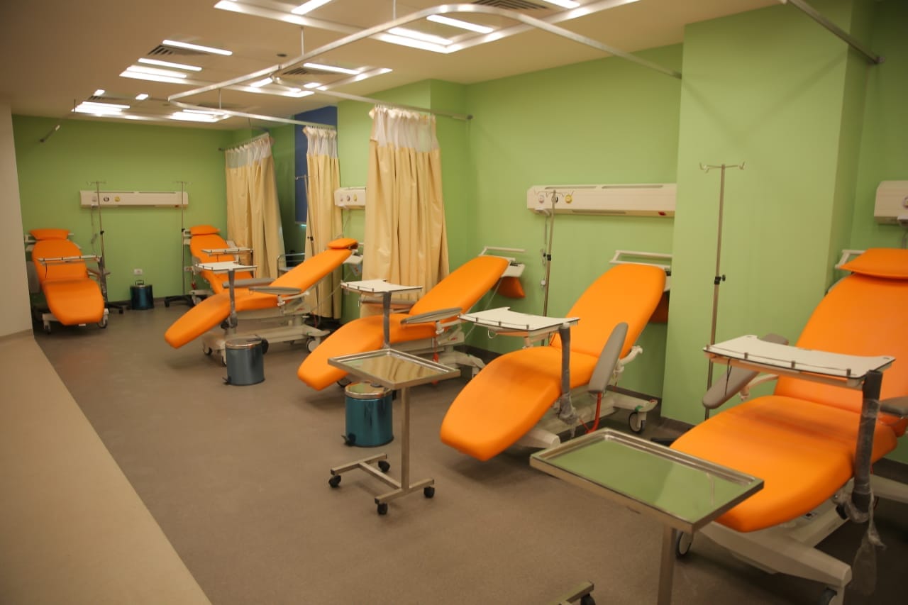 وحرصا على تفقد قسم العلاج بالكيماوي للكبار وللأطفال، حيث وجه وزير الصحة بوضع 4 شاشات في قسم علاج الكبار، حيث تستغرق جلسة الكيماوي ما يزيد عن أربع ساعات، كما وجه بضرورة زيادة عدد أسرة المستشفى لاستيعاب أكبر عدد من المرضى مع الحفاظ على عدم وجود كثافات.