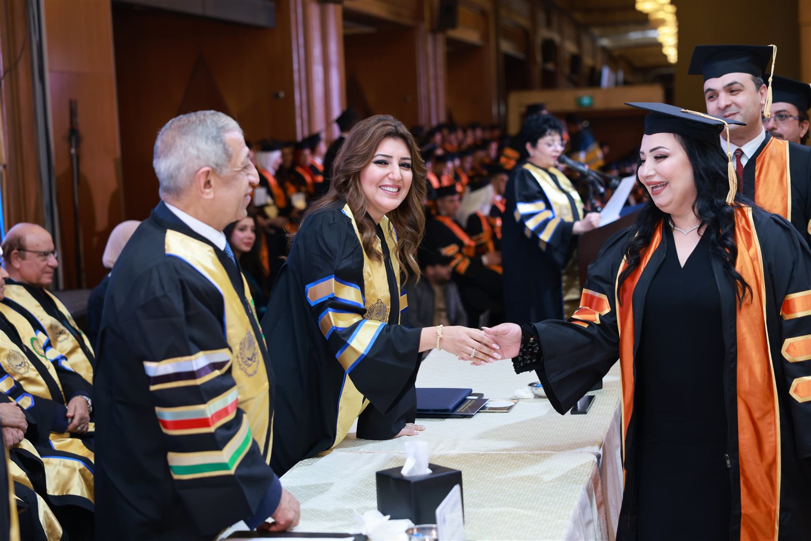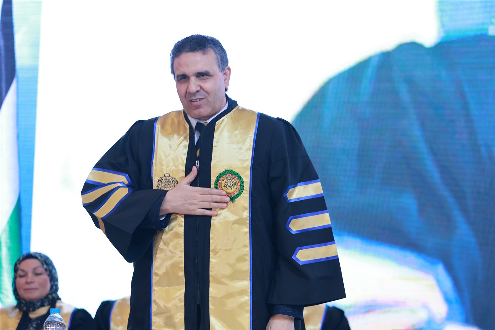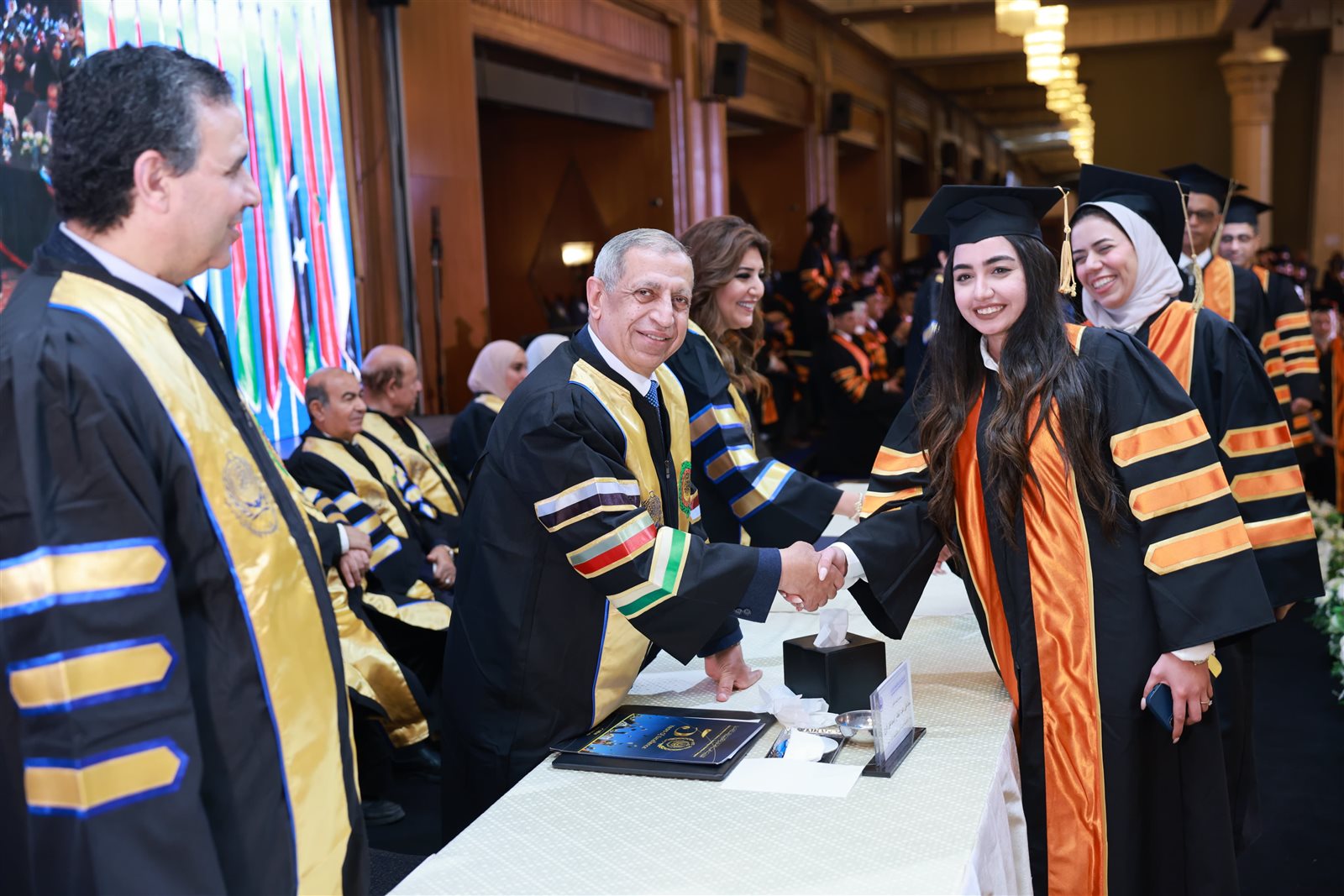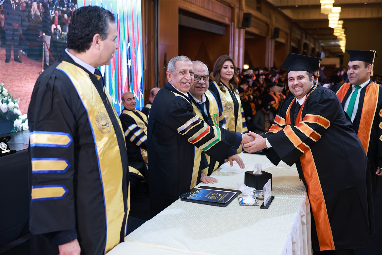 حضر حفل التخرج الأستاذ الدكتور إسماعيل عبدالغفار إسماعيل فرج رئيس الأكاديمية العربية، والدكتور علاء عبدالبارى نائب رئيس الأكاديمية العربية للدراسات العليا والبحث العلمي، والدكتورة/ آية الجارحى عميد معهد النقل الدولى واللوجستيات فرع القاهرة.