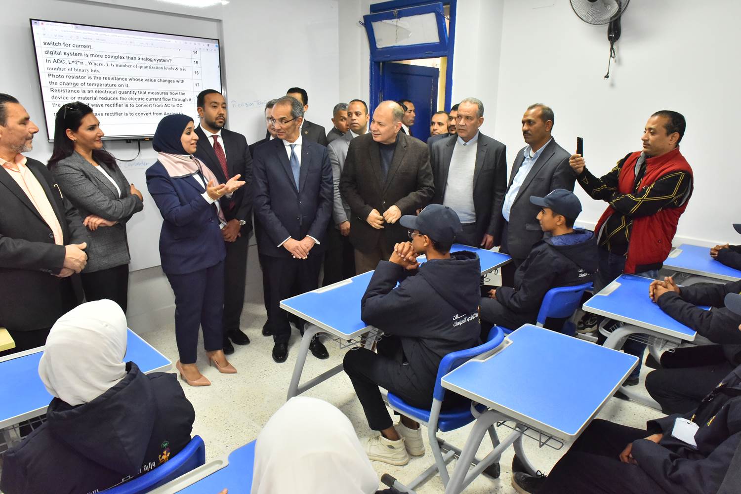 افتتح الدكتور عمرو طلعت وزير الاتصالات وتكنولوجيا المعلومات، يرافقه اللواء عصام سعد محافظ أسيوط، مدرسة WE للتكنولوجيا التطبيقية التابعة للشركة المصرية للاتصالات بمدينة أسيوط الجديدة والتي دخلت الخدمة العام الدراسي الحالي 2023/2024 وذك خلال زيارته للمحافظة في إطار تنفيذ بروتوكول التعاون الموقع بين وزارة التربية والتعليم والتعليم الفني، ووزارة الاتصالات وتكنولوجيا المعلومات، ومحافظة أسيوط والشركة المصرية للاتصالات في إطار استراتيجية وزارة الاتصالات وتكنولوجيا المعلومات لبناء القدرات الرقمية ورؤيتها لإعداد جيل من العمالة الفنية المؤهلة بأعلى معايير الكفاءة والجودة وذلك بالتعاون مع وزارة التربية والتعليم والتعليم الفني، وتعد أول مدرسة ذكية متخصصة فى مجال الاتصالات وتكنولوجيا المعلومات مطبقة للمعايير الدولية وتأتي تنفيذًا لتوجيهات الرئيس عبدالفتاح السيسي رئيس الجمهورية ببناء الانسان وتنمية المهارات والقدرات الرقمية والتي يعد من أحد ركائزها هو تحقيق الشمول التكنولوجي من خلال توفير فرص متميزة في التعلم والتدريب التقني في كافة أنحاء الجمهورية لتحقيق رؤية مصر 2030 واستراتيجية التنمية المستدامة.