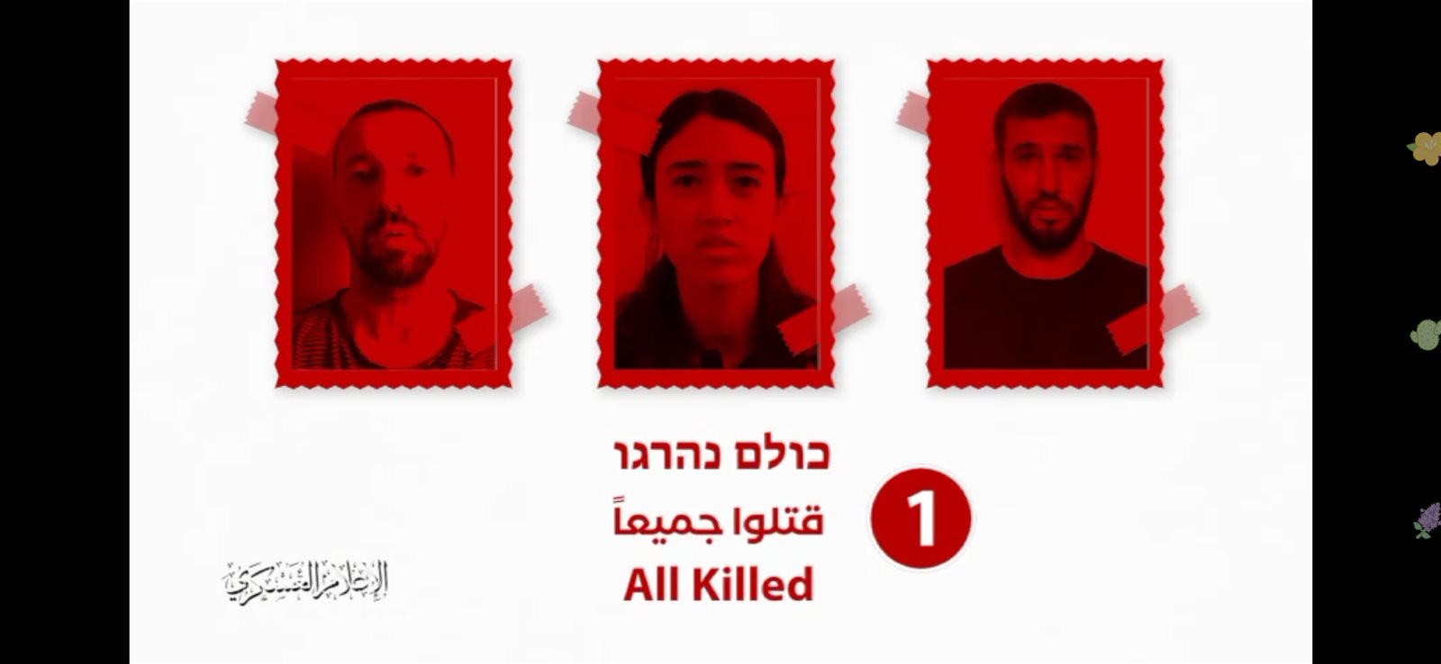 وكانت نشرت القسام عبر حسابها، أمس الأحد مقطع فيديو تحت عنوان حكومتكم تكذب، لثلاثة أسرى وهم نوعى ارغاماني وإيتاي صابرسكي ويوسي شرابي، يطلبون من رئيس وزراء الاحتلال الإسرائيلي نتنياهو، بسرعة إطلاق سراحهم.