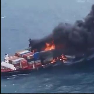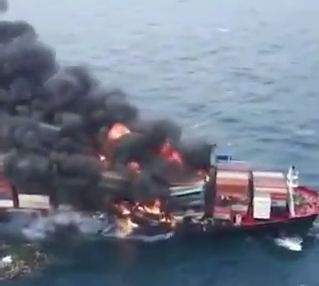 ورغم أن الشركة المشغلة للسفينة التي أصيبت بصاروخ، قالت إن السفينة تعرضت لأضرار محدودة في حمولتها، إلا أن الفيديو كشف ضرر بالغ للسفينة واشتعال النيران على متنها.