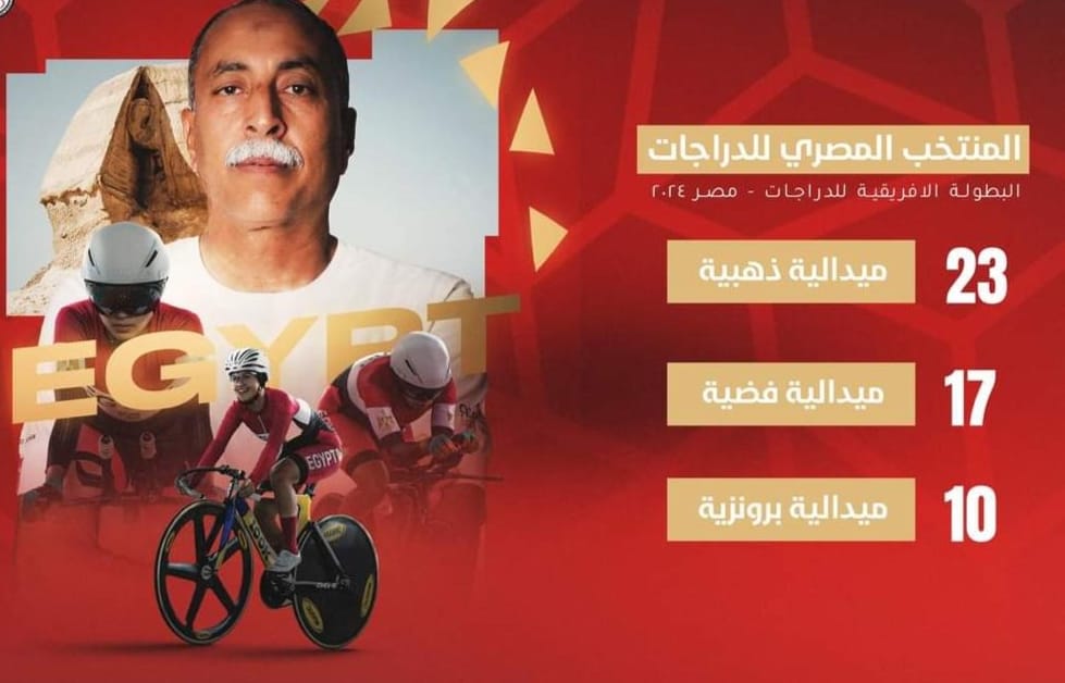 وجاءت ميداليات المنتخب الوطنى للدراجات ( الكبار، الشباب والناشئين) بواقع 23 ذهبية، 17 فضية، 10 برونزية، فى البطولة التى أُقيمت منافساتها فى الفترة من 10-14 يناير الجارى، بمشاركة 10 دول، وأكثر من 200 لاعب ولاعبة، باستاد القاهرة الدولى.