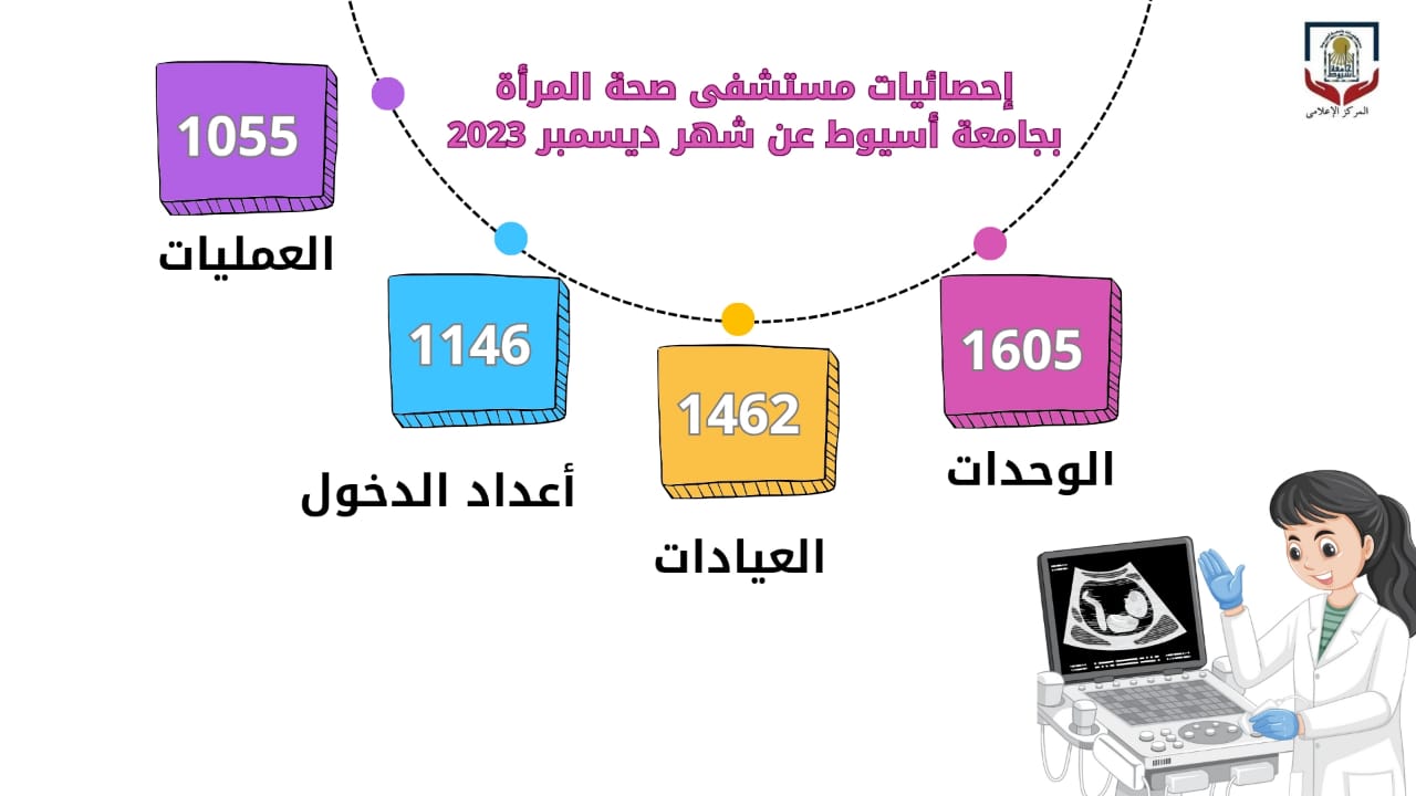 أعلن مستشفى صحة المرأة بجامعة أسيوط، عن استقباله 1605 متردداً بمختلف الوحدات خلال شهر ديسمبر الماضي، تحت رعاية الدكتور أحمد المنشاوي رئيس الجامعة، والدكتور علاء عطية عميد كلية الطب ورئيس مجلس إدارة المستشفيات الجامعية، والدكتور إيهاب فوزي المدير التنفيذي للمستشفيات الجامعية، وبإشراف الدكتور أحمد نصر مدير مستشفى صحة المرأة.