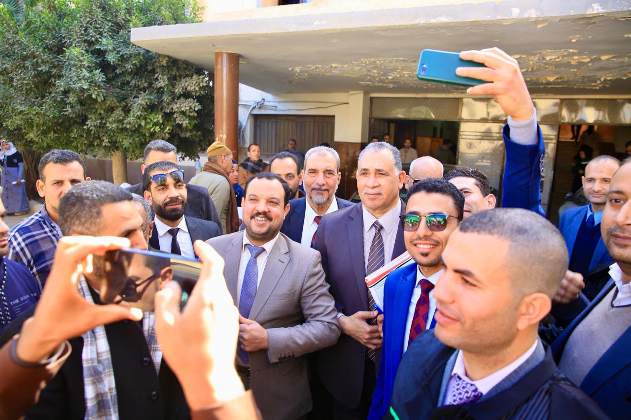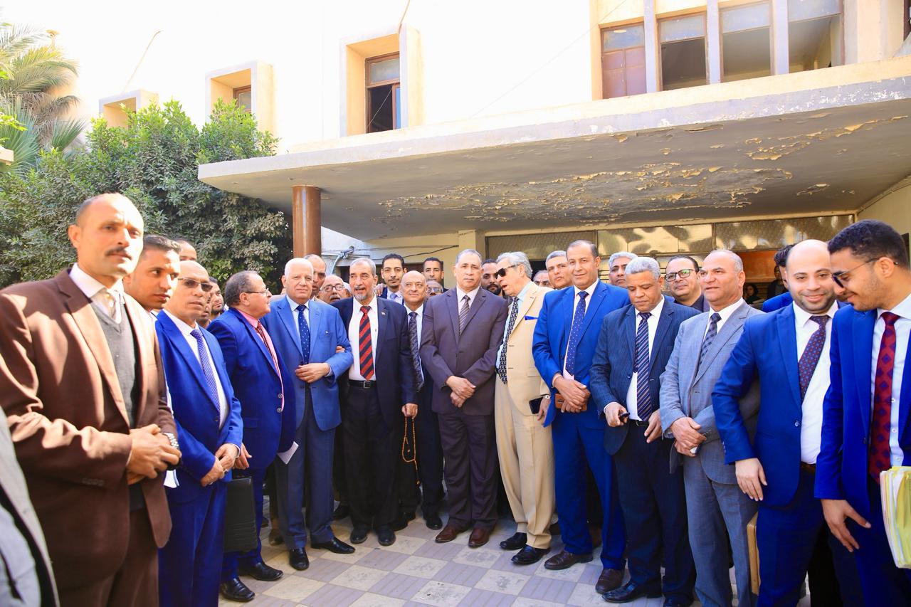 كان في استقبال نقيب المحامين، شيوخ وشباب المحامين من أعضاء الجمعية العمومية بأشمون، مرحبين به على زيارته وتفقده لاستراحات المحامين.