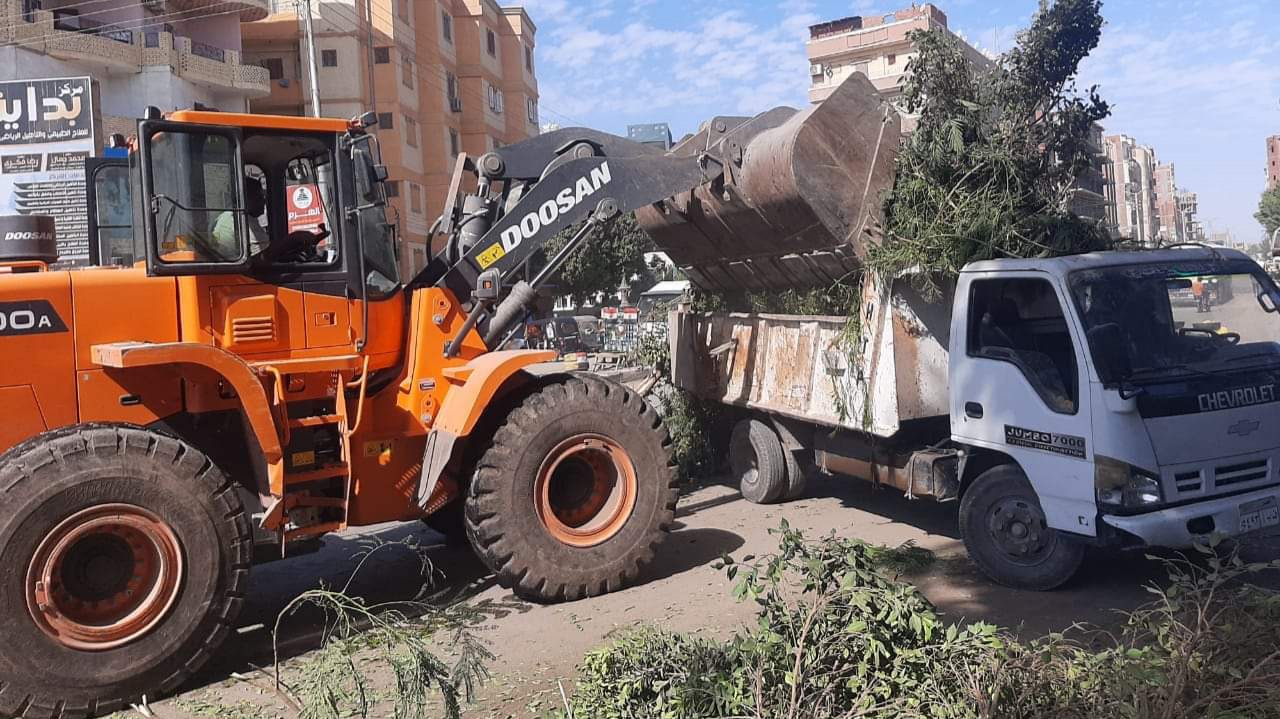 رفع تراكمات القمامة وقص الأشجار بشوارع مدينة أبشواي