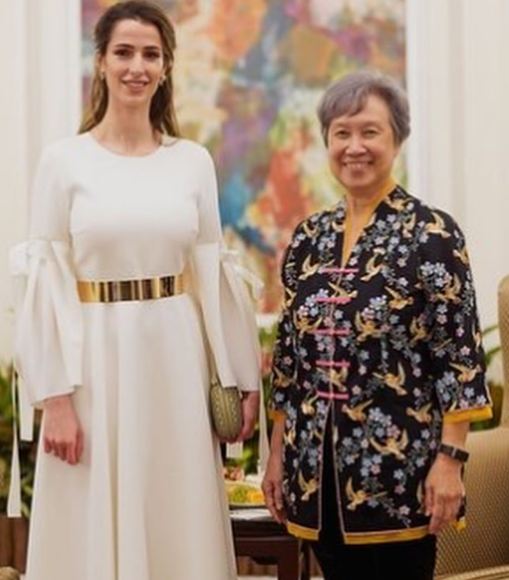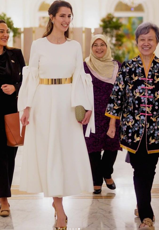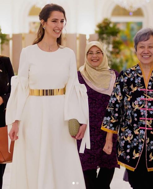خطفت الأميرة رجوة الحسين زوجة ولي عهد الأردن، الأمير الحسين بن عبدالله الثاني الأنظار برقي إطلالتها الجذابة خلال لقاء استقبالها الرسمي والاجتماع برئيس وزراء سنغافورة.
