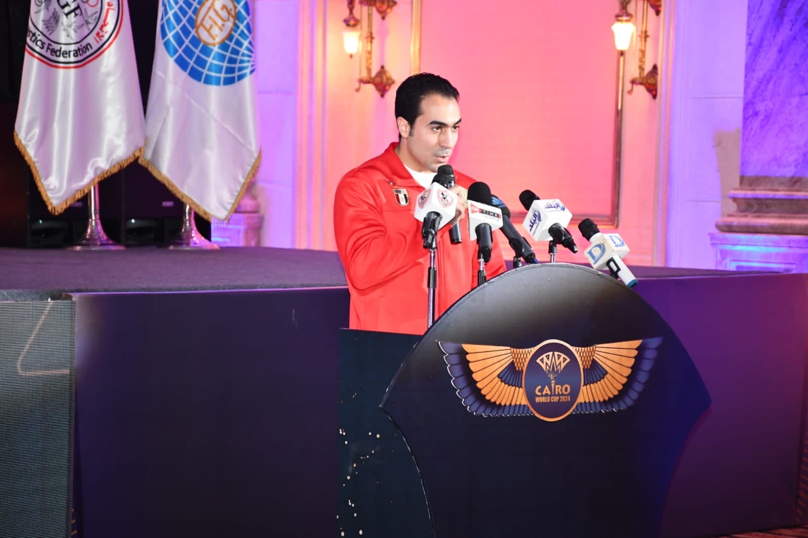 وخلال كلمته، أكد وزير الشباب والرياضة أن البطولة ستشهد مشاركة أكبر عدد من الدول في بطولات كأس العالم والتي تصل الي ٧٠ دولة، يمثلهم ٢٩٣ لاعب ولاعبه، مما يعكس المستوى المتميز للرياضة المصرية، والإمكانيات التي تتمتع بها مصر لاستضافة البطولات الرياضية العالمية، مشيراً إلى أن إستضافة بطولة كأس العالم للجمباز الفني سيكون على أعلى مستوى في كافة التفاصيل الفنية والتنظيمية وغيرها، لافتاً أن الرياضة المصرية تشهد العديد من الانجازات على كافة الأصعدة وأبرزها نتائج أبطال مصر الرياضيين في المنافسات الدولية.