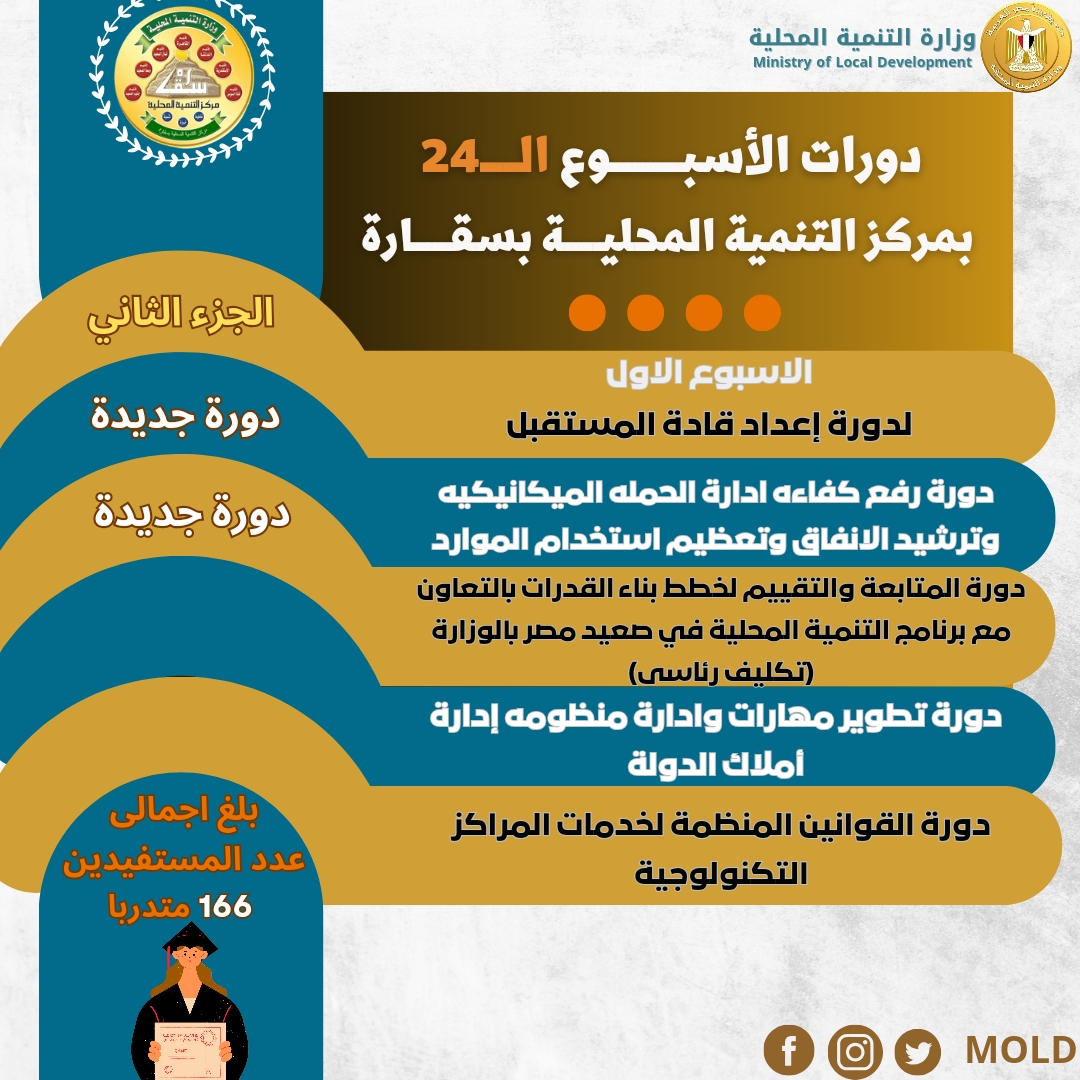 في إطار اهتمام وزارة التنمية المحلية برفع كفاءة العاملين بالجهاز الإداري للمحافظات من خلال تنمية المهارات القيادية والإدارية خاصة للصف الثاني من العاملين بالمحليات.