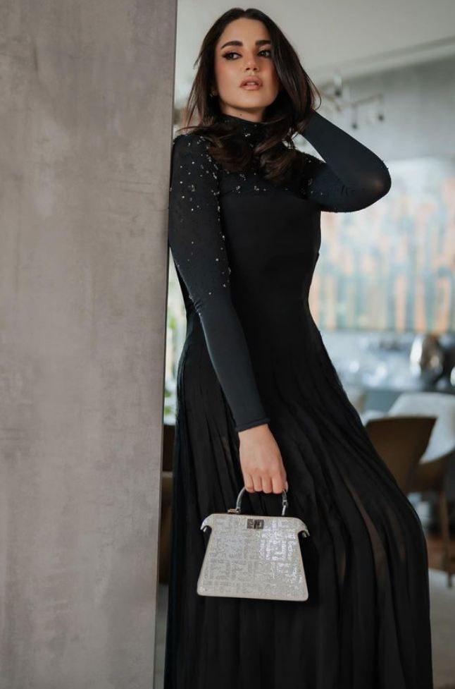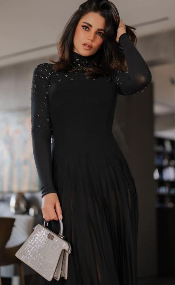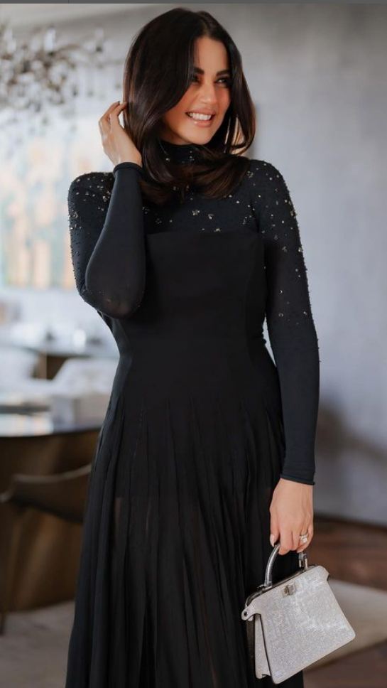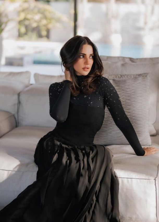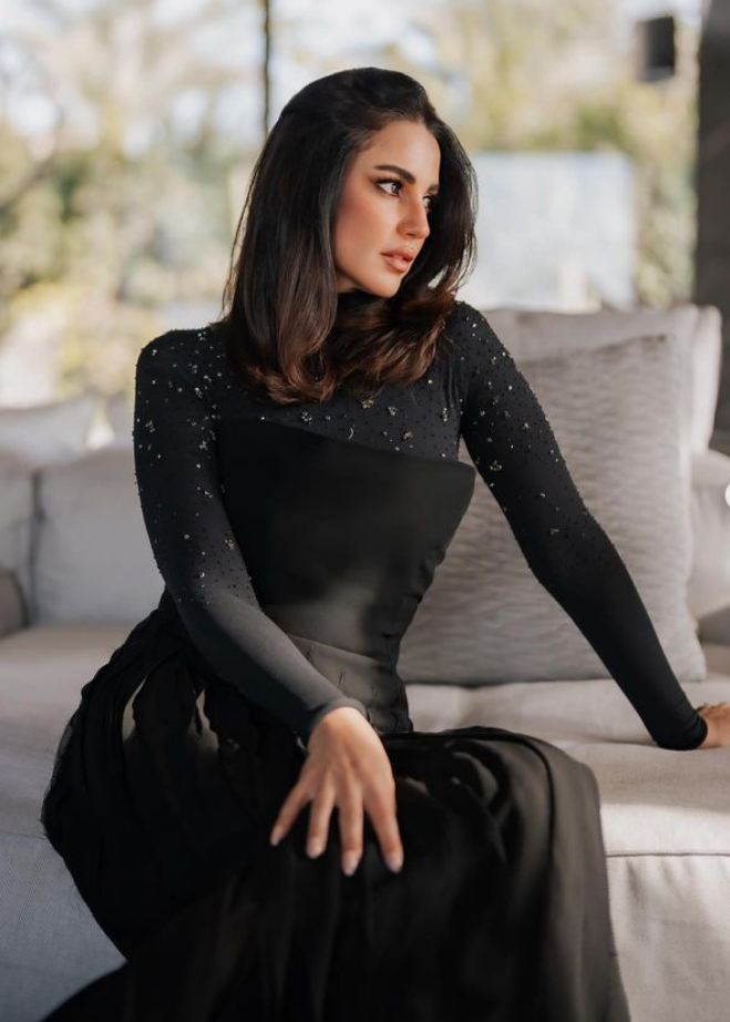 أما من الناحية الجمالية، اختارت ترك خصلات شعرها منسدلة بشكل ناعم فوق كتفيها ووضعت مكياجًا ناعمًا مرتكزًا على الألوان الترابية مع الكحل وظلال الجفون لتعكس جمال عينيها ولون الكشمير في الشفاه.