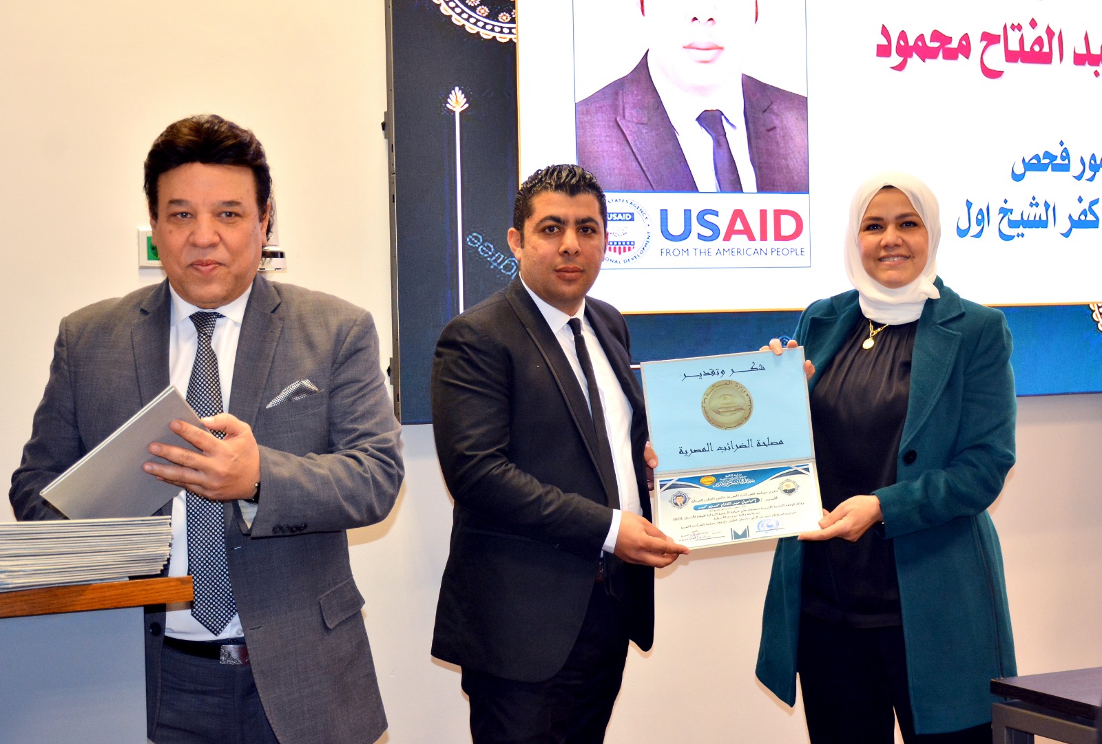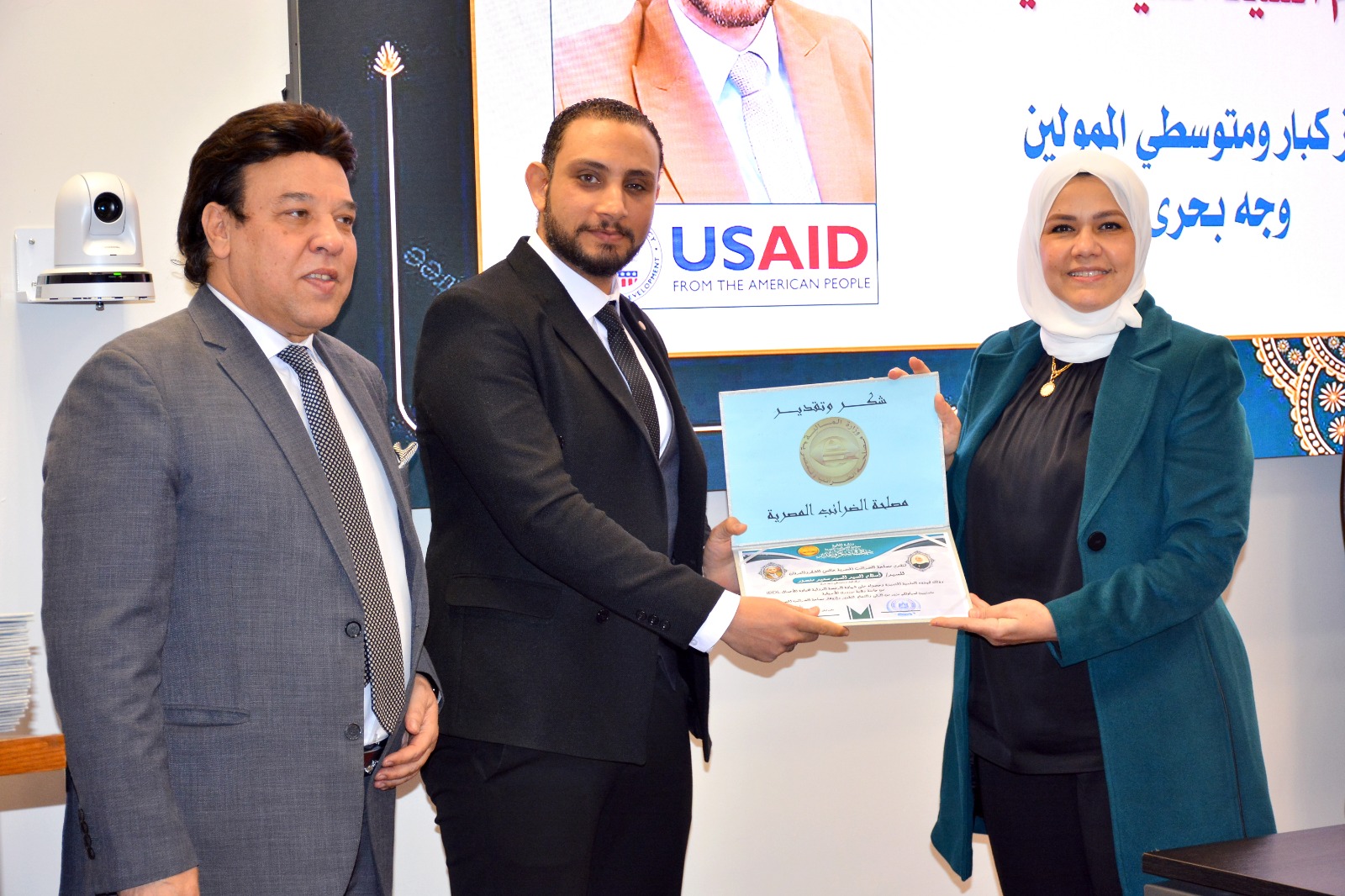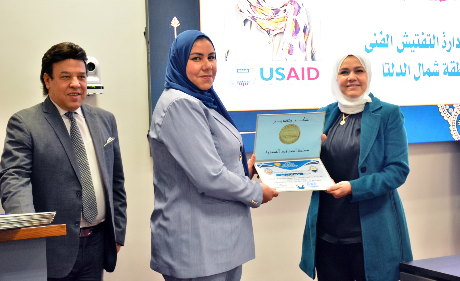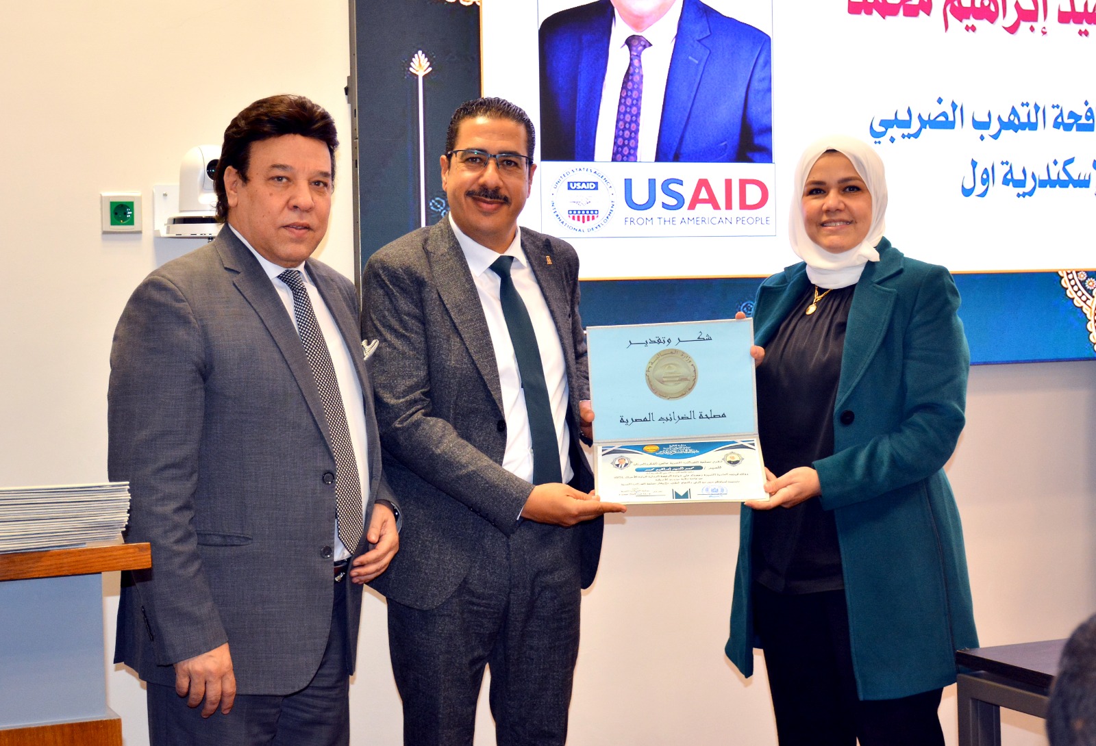 وفي ختام الإحتفالية قامت رئيس مصلحة الضرائب المصرية بتسليم العاملين الحاصلين على الرخصة الدولية لقيادة الأعمال IBDL  ضمن مبادرة تواصل شهادات تقدير ، والتقاط الصور التذكارية معهم.