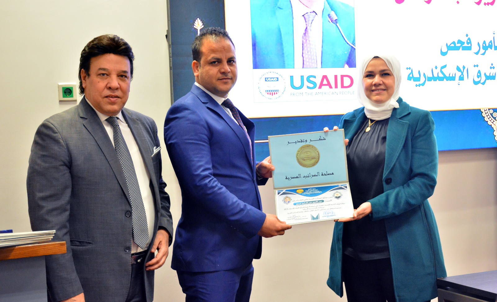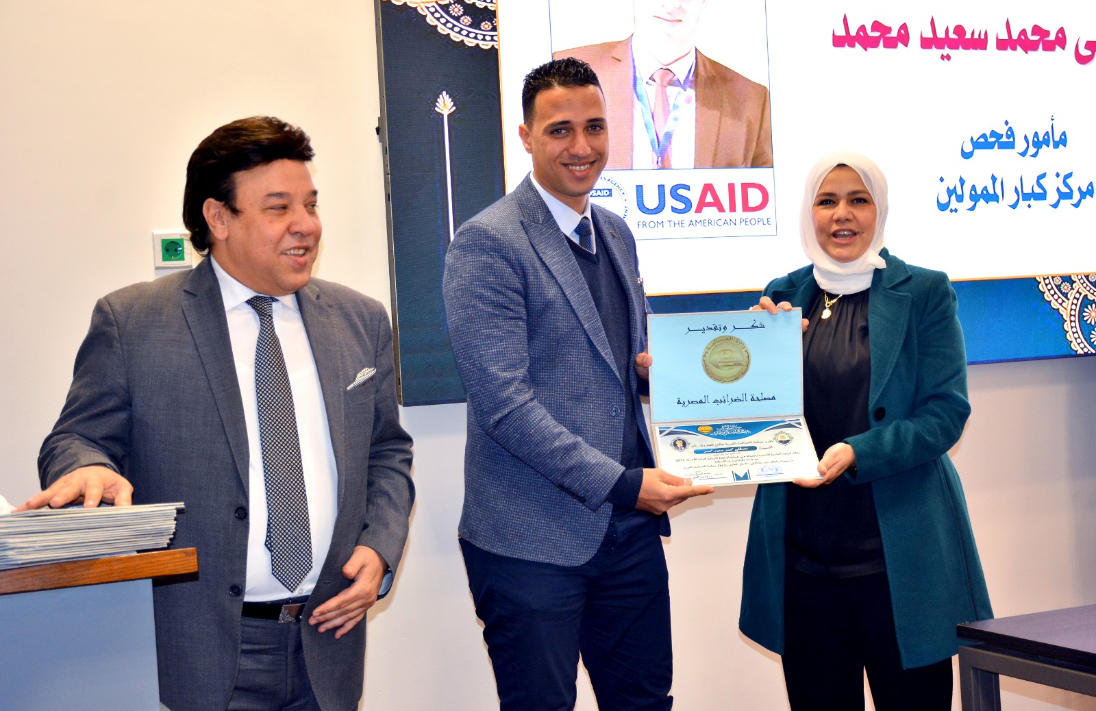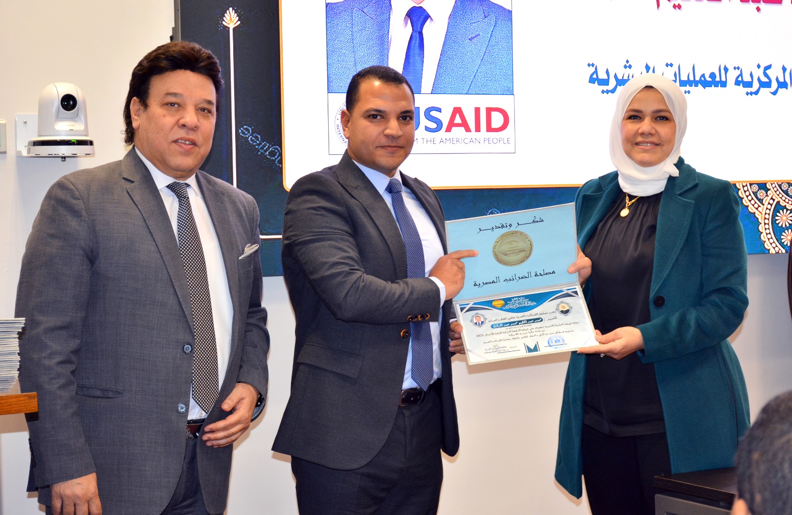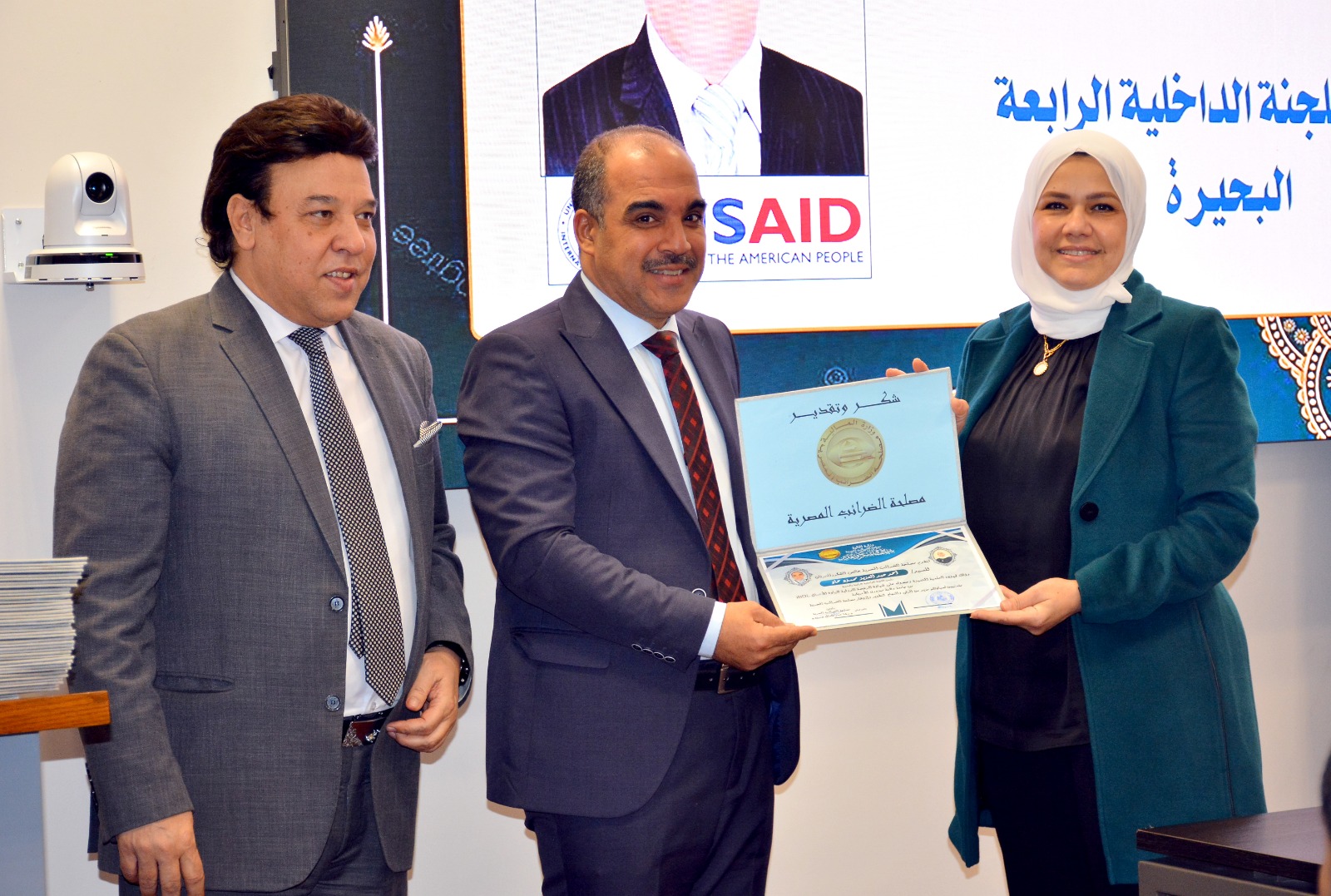 وفي ختام الإحتفالية قامت رئيس مصلحة الضرائب المصرية بتسليم العاملين الحاصلين على الرخصة الدولية لقيادة الأعمال IBDL  ضمن مبادرة تواصل شهادات تقدير ، والتقاط الصور التذكارية معهم.