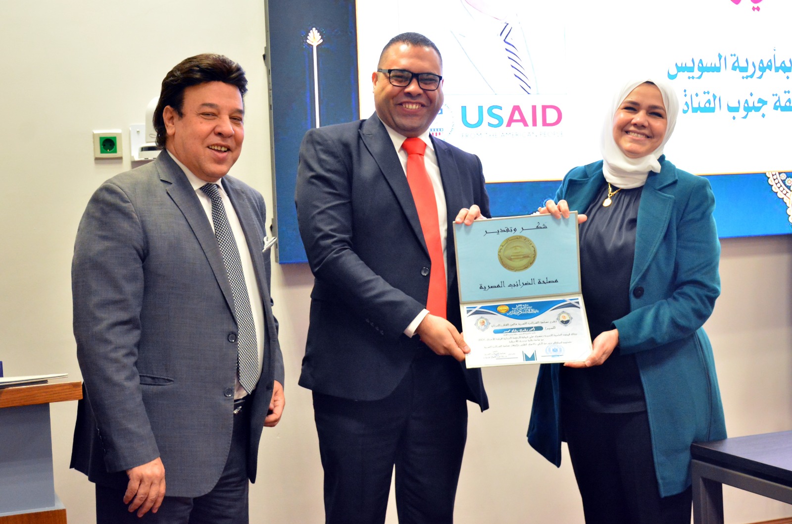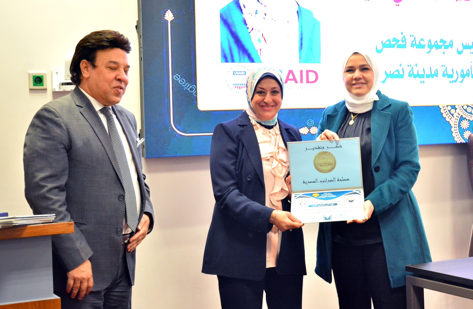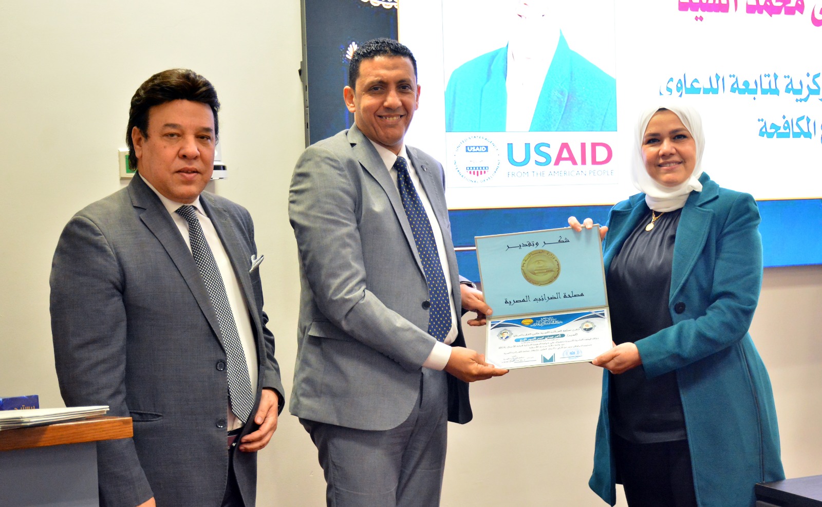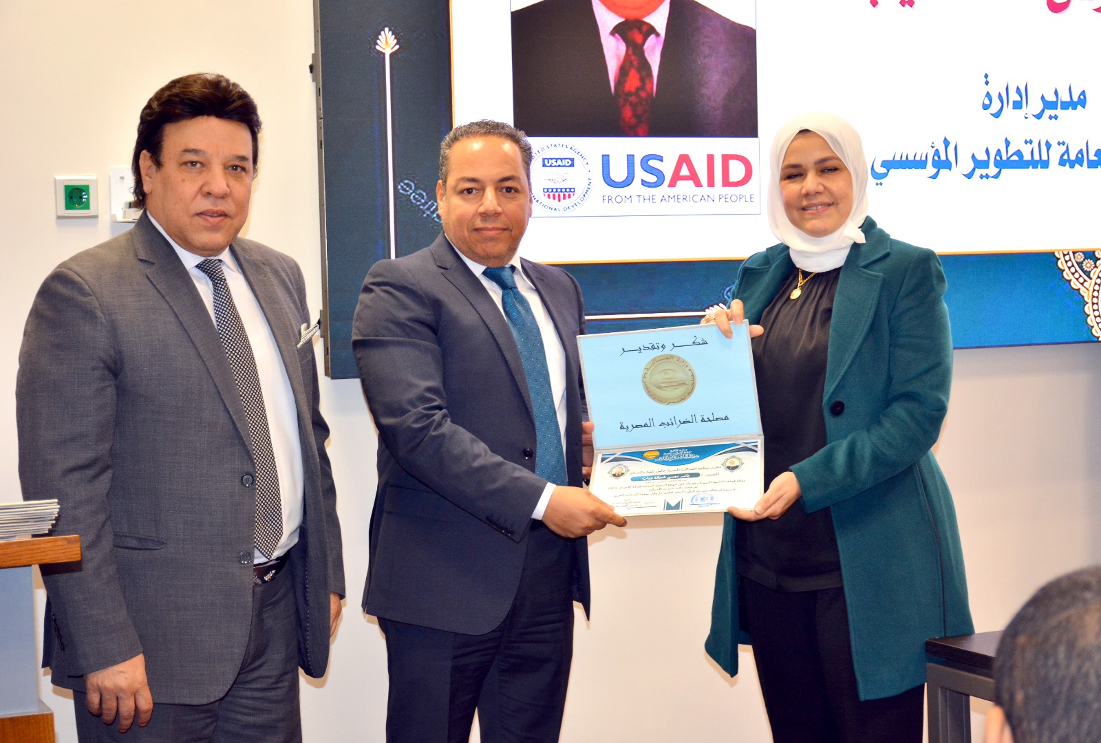 وفي ختام الإحتفالية قامت رئيس مصلحة الضرائب المصرية بتسليم العاملين الحاصلين على الرخصة الدولية لقيادة الأعمال IBDL  ضمن مبادرة تواصل شهادات تقدير ، والتقاط الصور التذكارية معهم.