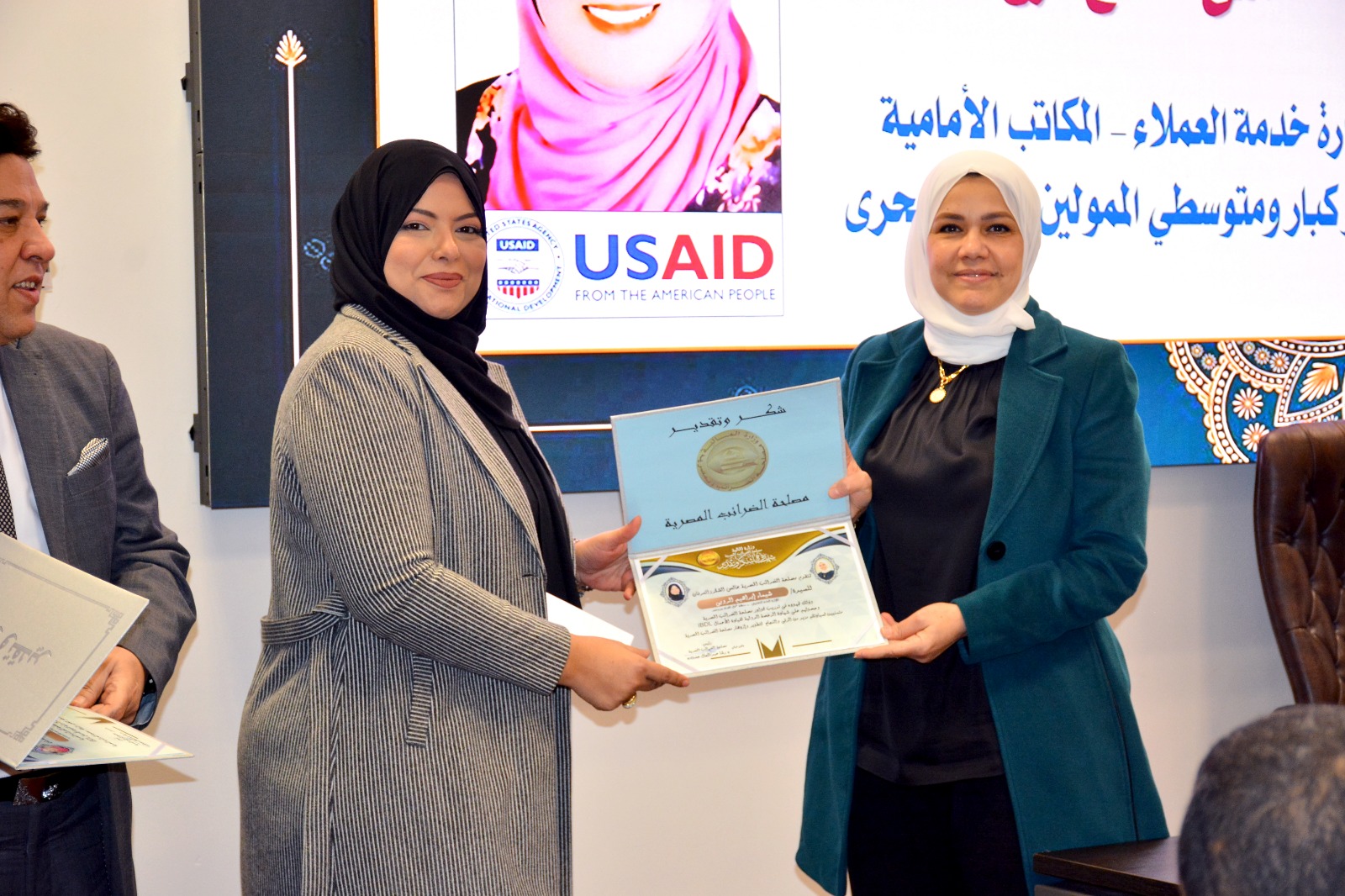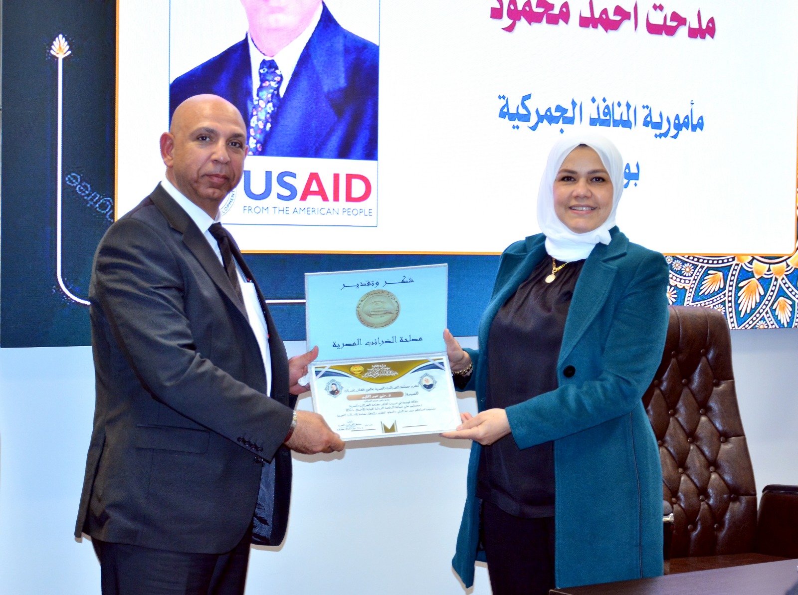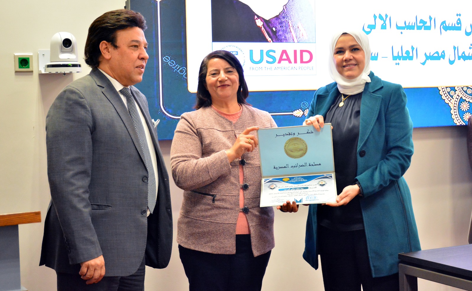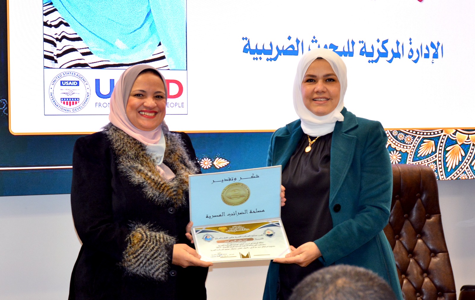 وفي ختام الإحتفالية قامت رئيس مصلحة الضرائب المصرية بتسليم العاملين الحاصلين على الرخصة الدولية لقيادة الأعمال IBDL  ضمن مبادرة تواصل شهادات تقدير ، والتقاط الصور التذكارية معهم.