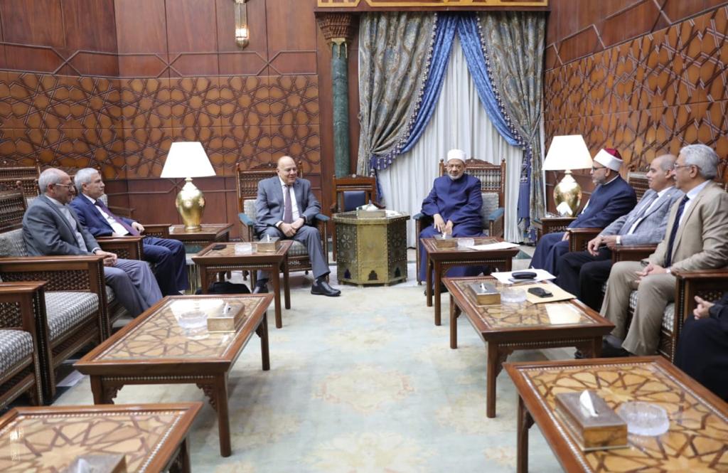استقبل الإمام الأكبر الدكتور أحمد الطيب، شيخ الأزهر الشريف، اليوم الإثنين بمشيخة الأزهر، الدكتور عمرو عزت، أمين عام اتحاد الجامعات العربية، والدكتور مشهور الرفاعي، الأمين العام للمجلس الأعلى للعلوم والتكنولوجيا الأردني، لمناقشة عدد من المشروعات العلمية المشتركة، وبحث استمرار عضويَّة جامعة الأزهر في الاتحاد العربي للجامعات العربية.