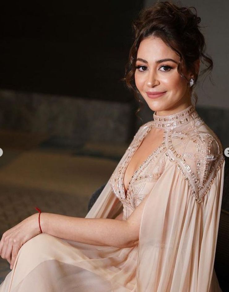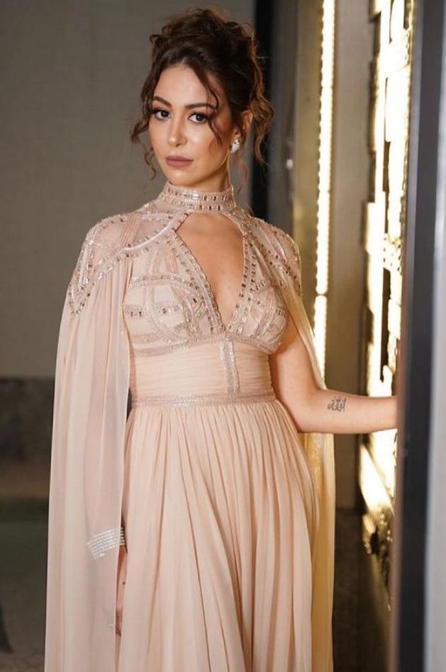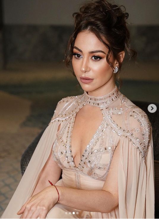 أما من الناحية الجمالية، اعتمدت تسريحة شعر جذابة ووضعت مكياجًا ناعمًا مرتكزًا على الألوان الترابية مع تحديد عينيها بالكحل والماسكرا السوداء ولون الكشمير في الشفاه.
