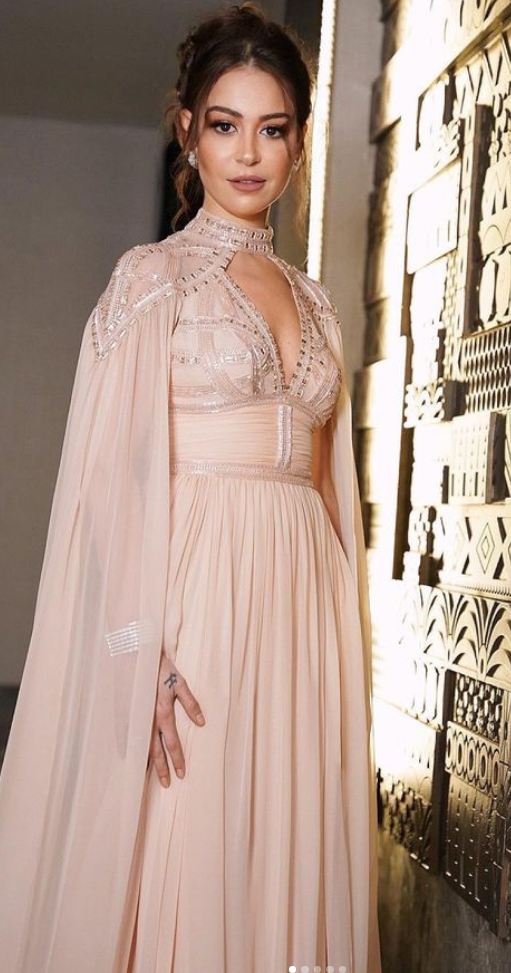 وتألقت منة شلبي بإطلالة ساحرة مميزة من اختيار خبير الموضة Mohamed ashraff توقيع مصمم الأزياء اللبناني زهير مراد، حيث ارتدت فستان طويل فضفاض، ينتمي لقصة الـ v، محدد الخصر، لياقة عالية، أتسم بكاب مطرز بحبات الخرز الذهبي من الأمام صمم الفستان من قماش الحرير باللون الكريمي، وتزينت ببعض المجوهرات الماسية المميزة.