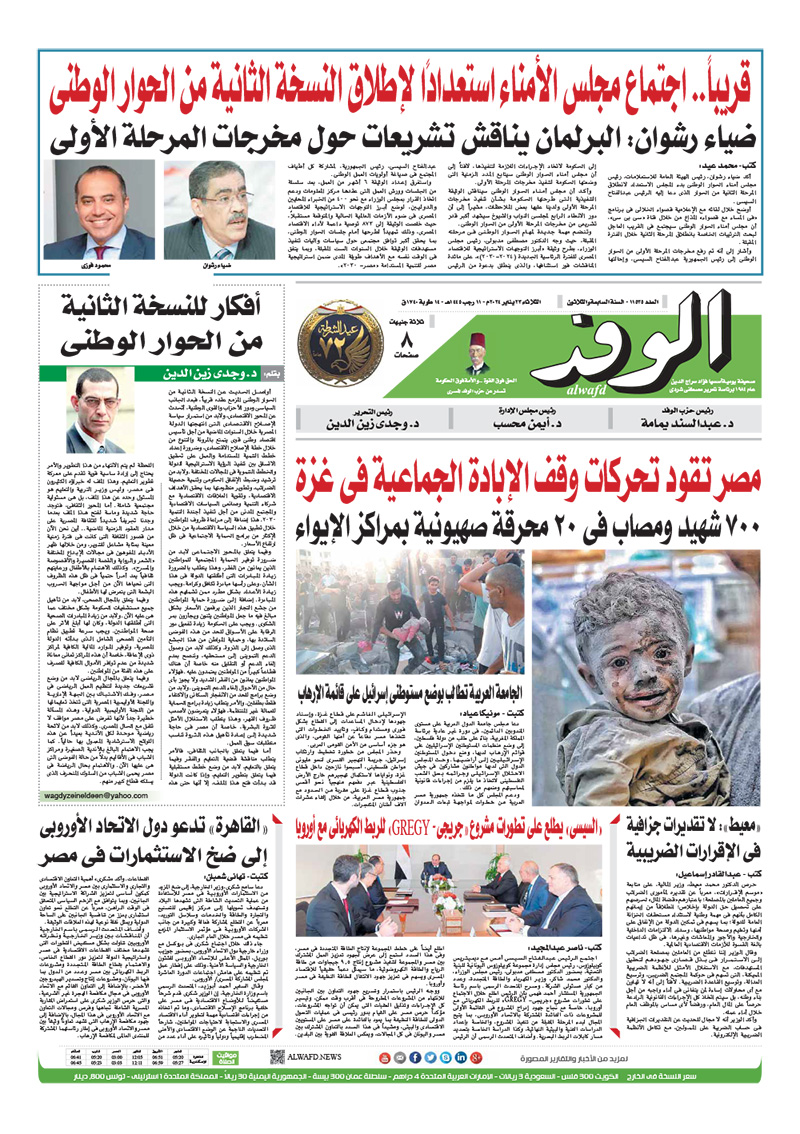 تنشر جريدة الوفد في عددها الصادر، غدًا الثلاثاء، العديد من الموضوعات والتقارير الإخبارية المهمة، أبرزها "مصر تقود تحركات وقف الإبادة الجماعية في غزة".