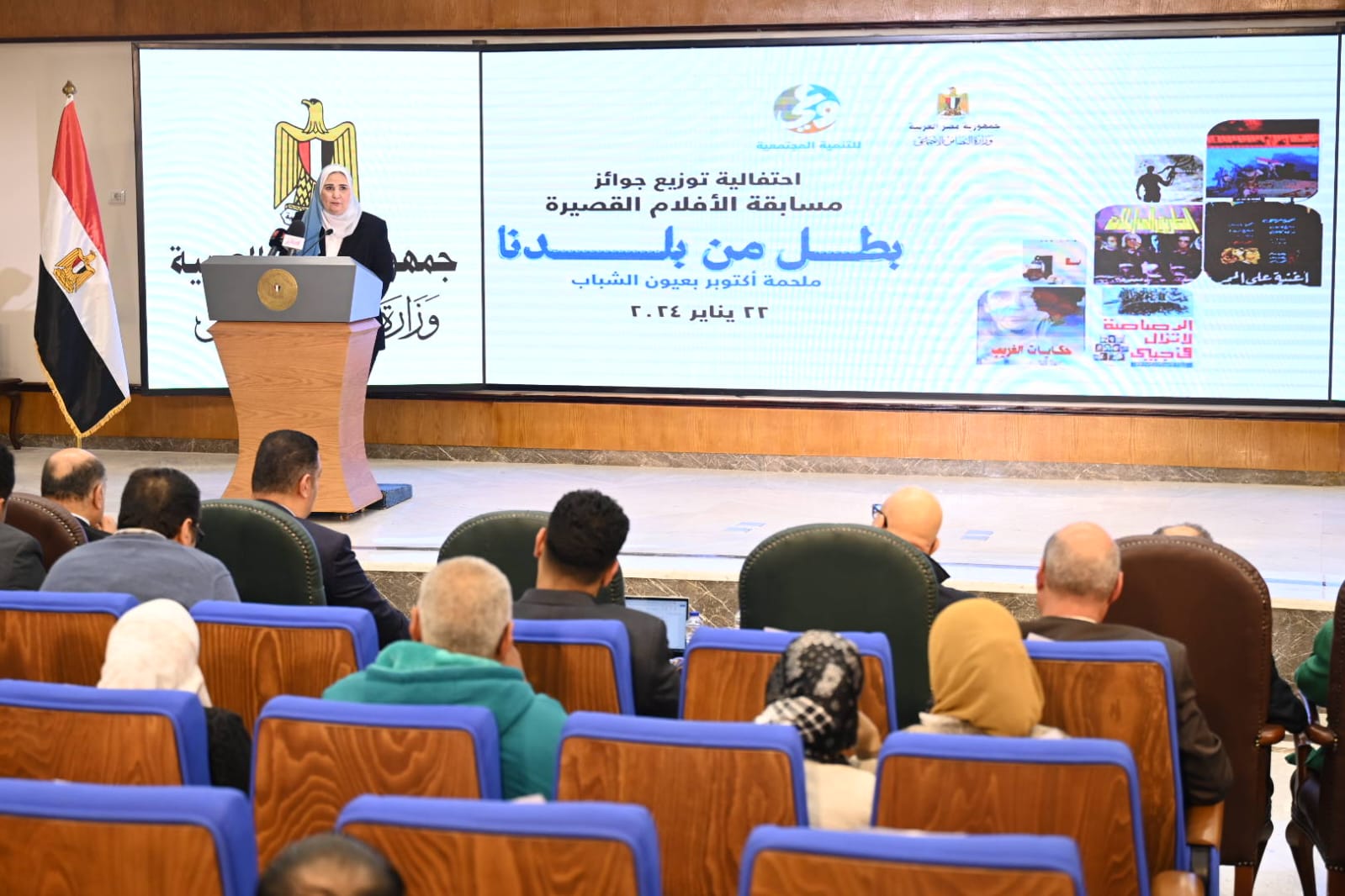 شهدت الدكتورة نيفين القباج وزيرة التضامن الاجتماعي احتفالية إعلان وتسليم جوائز مسابقة الأفلام القصيرة «بطل من بلدنا» والتى أطلقتها وزارة التضامن الاجتماعي فى إطار الاحتفال بالذكرى الخمسين لانتصارات حرب السادس من أكتوبر 1973 المجيدة في العام الماضي.
