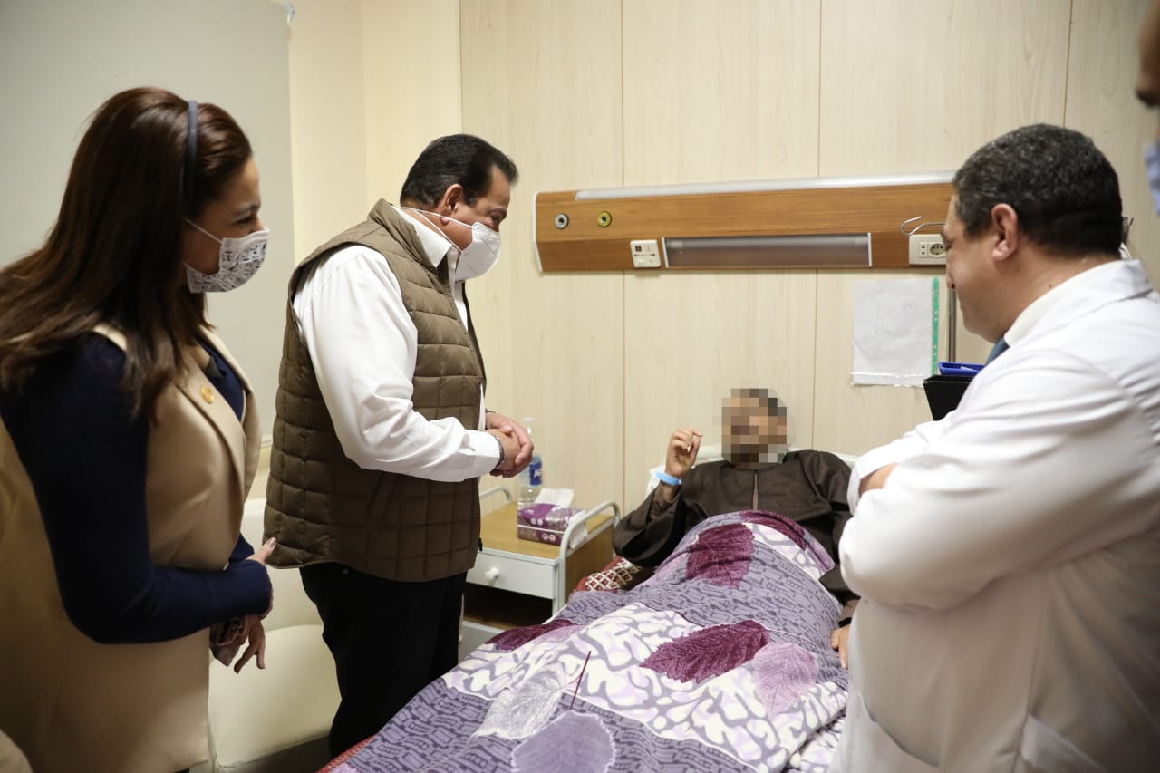 وقال "عبد الغفار " إن الوزير  تفقد غرف الرعاية المركزة وأطلع على نسبة الإشغال، كما اطلع على تقرير تفصيلي بنوعية الحالات المحجوزة، موجها بتوفير كافة سبل الرعاية الصحية للمرضى، كما تفقد غرف حضانات الأطفال المبتسرين، مشددا على مراقبة نسب ومعدلات الولادة القيصرية بحيث يتم تشجيع المواطنات على الولادة الطبيعية للتقليل من معدل حجز الأطفال حديثي الولادة بالحضانات، كما تفقد الوزير غرف حجز  المرضى الكبار وكذلك غرف حجز الأطفال واطمأن على حالتهم موجها بمتابعة يومية لحالتهم الصحية حتى التحسن ومغادرة المستشفى.