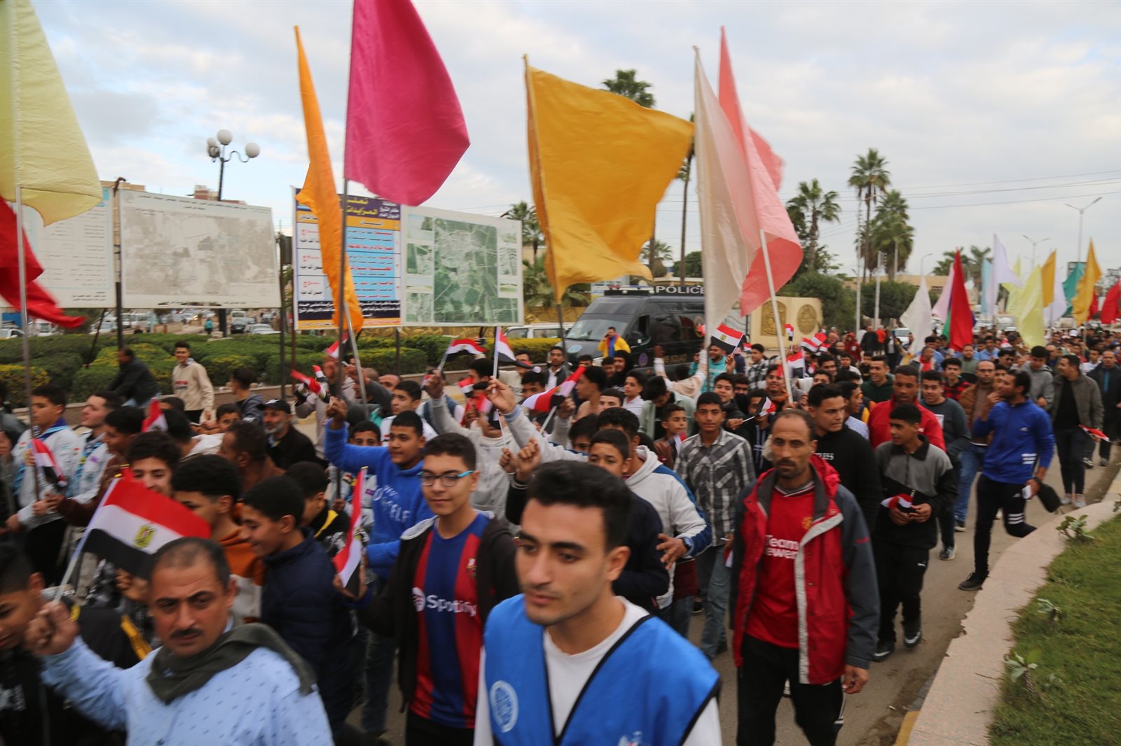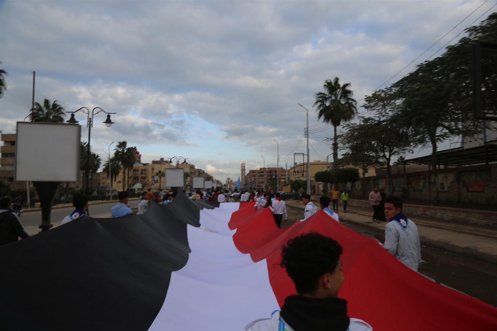 جدير بالذكر: إن المسيرة بدأت من أمام الديوان العام للمحافظة مرورًا بالدوران حتى مديرية الشباب والرياضة بحى الزهور، بمشاركة أعضاء فريق شباب يدير شباب والفرق الكشفية، ومشاركة نحو ٦٥٠ شاب وفتاة فى مشهد مهيب زينه علم الجمهورية بطول 50 مترا حمله أعضاء الفرق الكشفية لعشائر الجوالة بمراكز الشباب، بكفرالشيخ، وتوجهّها أعضاء الفريق التطوعى "شباب يدير شباب". وزارة الشباب والرياضة - مصر.