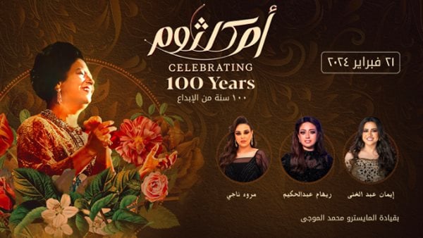 ويقام الحفل العالمي احتفاء بـ”سيدة الغناء العربي” أم كلثوم، تحت عنوان «100 عام من الإبداع»، في أهم حفل غنائي يشهده الوطن العربي تقديراً للنجاح الساحق الذي وصلت أصداؤه لكل أنحاء العالم، وأغانيها التي أثرت بوجدان المصريين بشكل خاص حتى اليوم، ويرددها الكثير من الأجيال في الوطن العربي،.
