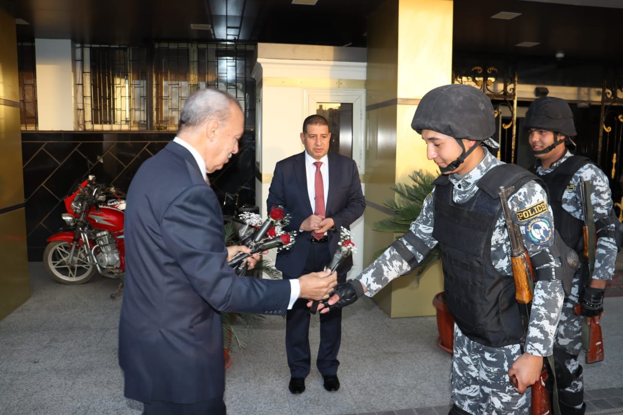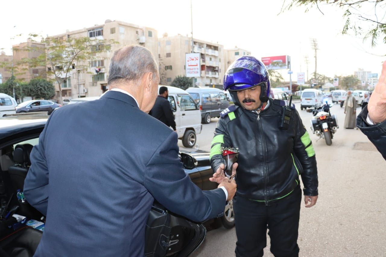 وفى نهاية الاحتفالية قام الهجان بتوزيع الورود على ضباط وأفراد الشرطة في الطريق من مبنى قوات الأمن وحتى مبنى المحافظة للتعبير عن أصدق وأخلص التهاني القلبية بمناسبة عيد الشرطة .