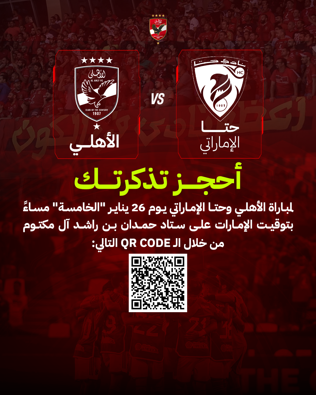 طرحت الشركة المنظمة لمعسكر الأهلي بالإمارات تذاكر مباراة الفريق الأحمر الودية ضد حتا الإماراتي المقررة بعد غدٍ الجمعة على ملعب (حمدان بن راشد آل مكتوم).