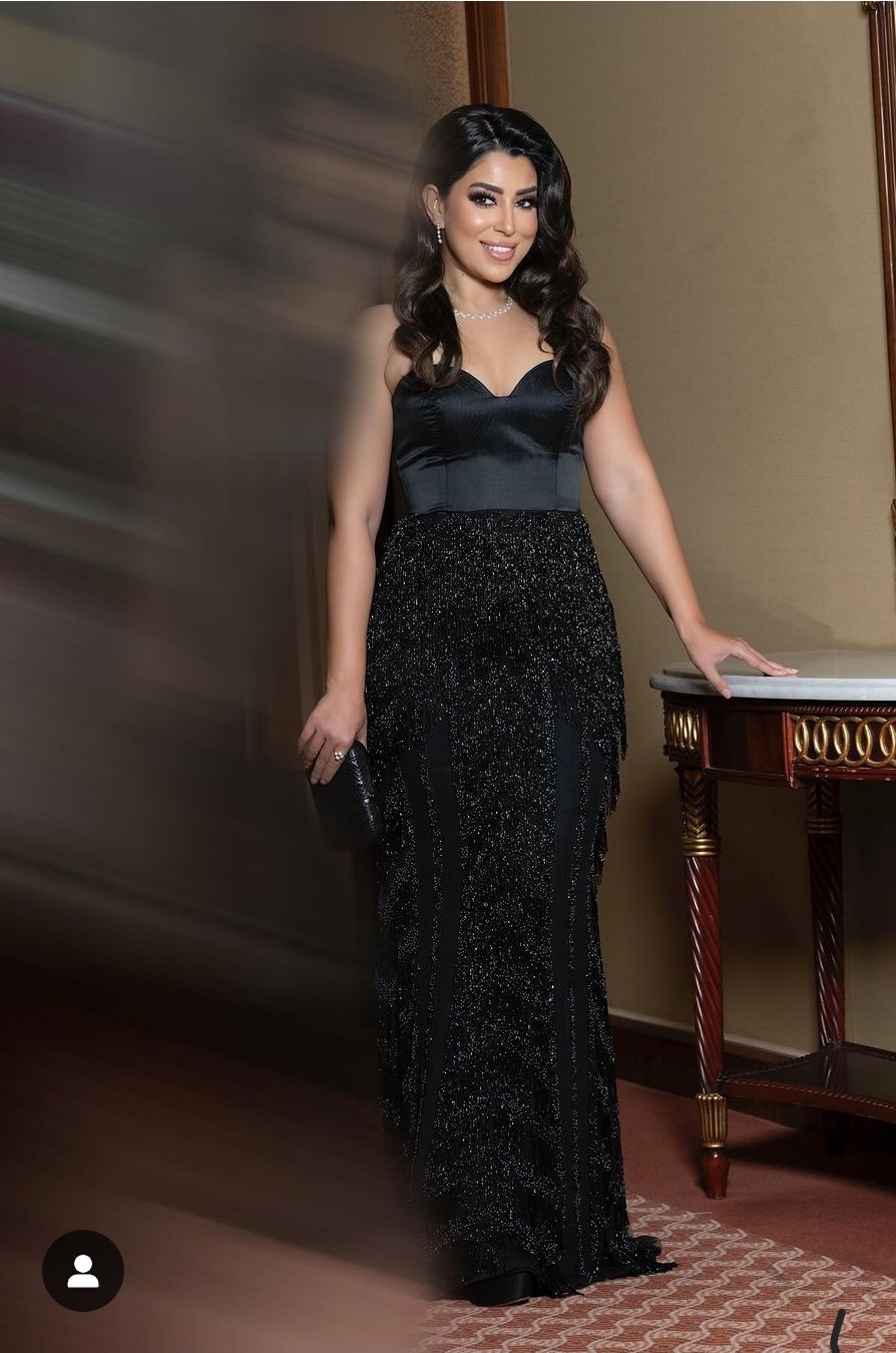 وبدت أيتن عامر بإطلالة ساحرة متناغمة مع قوامها الرشيق، حيث ارتدت فستان طويل مجسم، محدد الخصر، صمم من قماش الساتان الأسود مع التل المطرز بحبات الخرز الأسود كشراشيب.