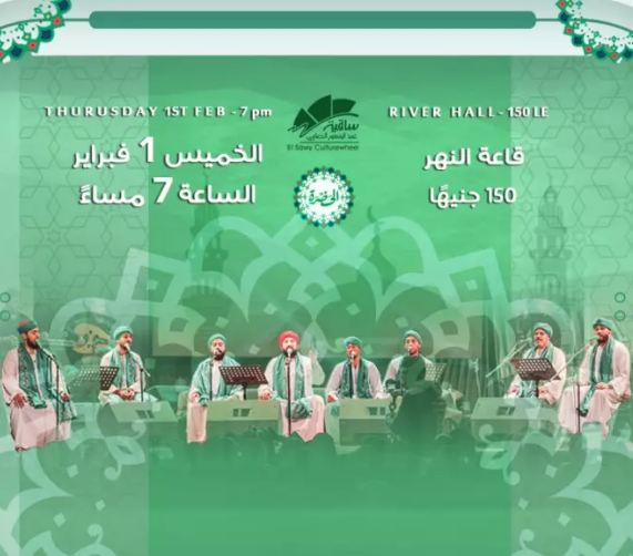 تستعد فرقة الحضرة، لإحياء حفل إنشاد ديني، في السابعة مساء الخميس الموافق 1 فبراير القادم بساقية عبدالمنعم الصاوي، وسعر التذكرة 150 جنيهًا.
