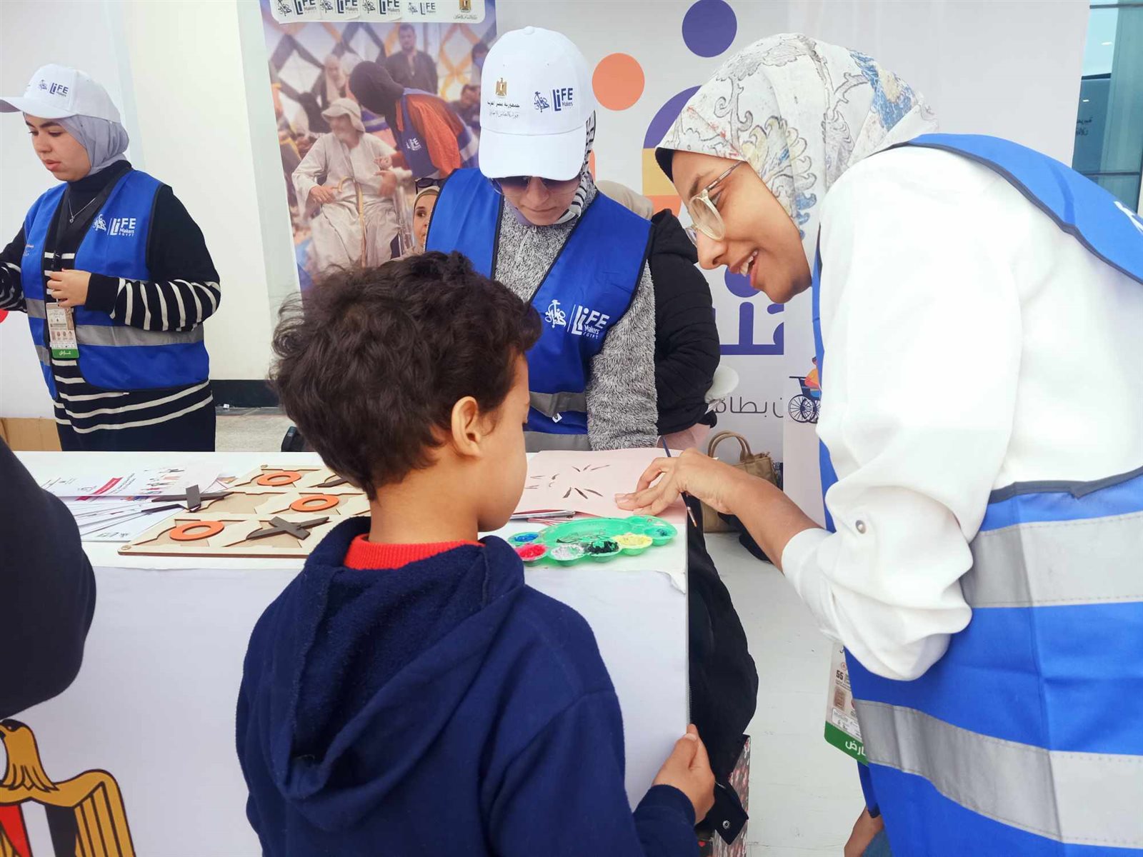 وقالت سهيلة عثمان، مؤسسة صناع الحياة، أن الجناح يقدم أنشطة توعوية للجمهور عن تلك البطاقات، مضيفة: "إزاي يقدم ويسجل ولو حد بيزور المعرض منهم بيسجلوا عادي معانا وأنشطة للأطفال لحشدهم وتحفيزهم".