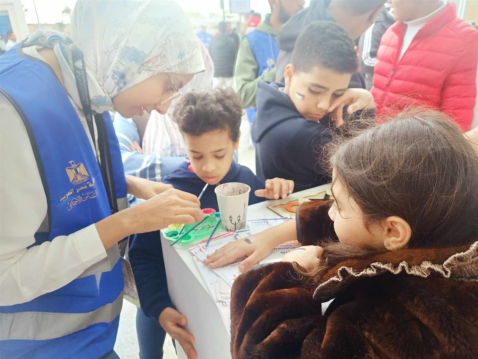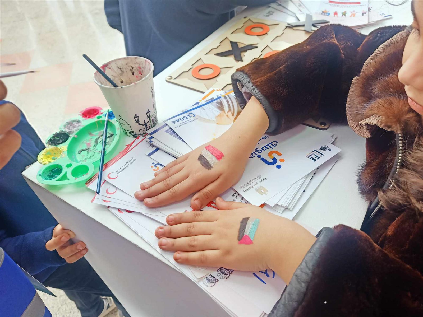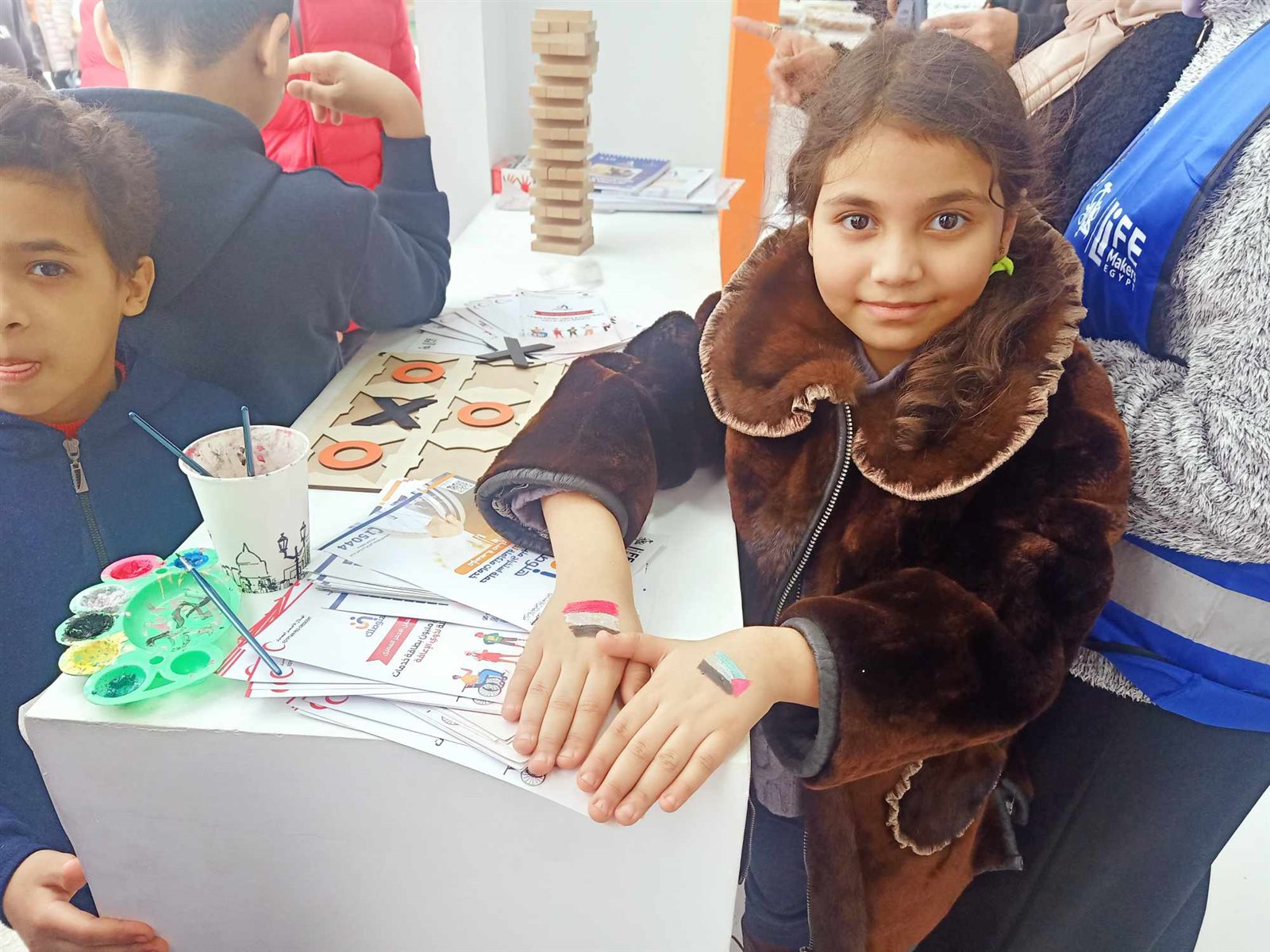 يقدم معرض القاهرة الدولي للكتاب 2024 أنشطة وفعاليات خاصة بالأطفال وكان من بينها أنشطة رسم، برز من خلالها القائمون على توجيه الضوء على الأزمة التي تعيشها غزة الآن، حيث قام الحاضرون على رسم علم فلسطين ومصر على أيدي الأطفال الصغار، لتربية الانتماء والوحدة العربية داخل هؤلاء الأطفال وهم مستقبل الأمة.