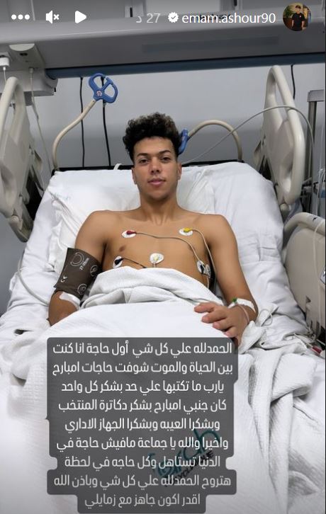 وكتب عاشور في رسالة عبر موقع انستجرام، اليوم الخميس: "الحمد لله على كل شيء، أول حاجة أنا كنت بين الحياة والموت شوفت حاجات امبارح يارب ما تكتبها على حد".