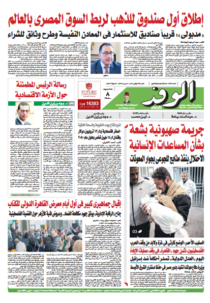 تنشر جريدة الوفد في عددها الصادر، غدًا الجمعة، العديد من الموضوعات والتقارير الإخبارية المهمة، أبرزها "إطلاق أول صندوق للذهب لربط السوق المصري بالعالم".