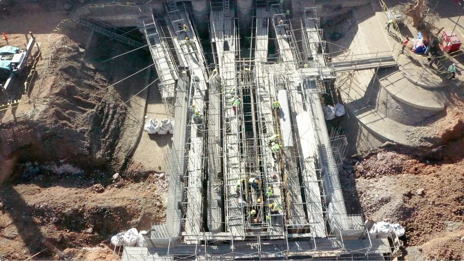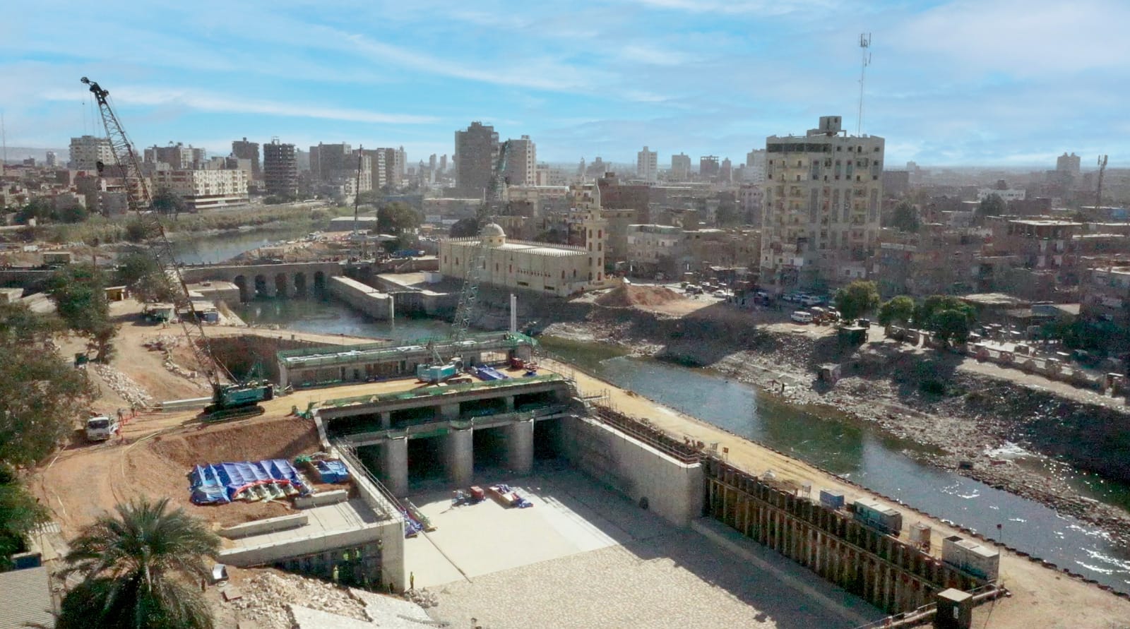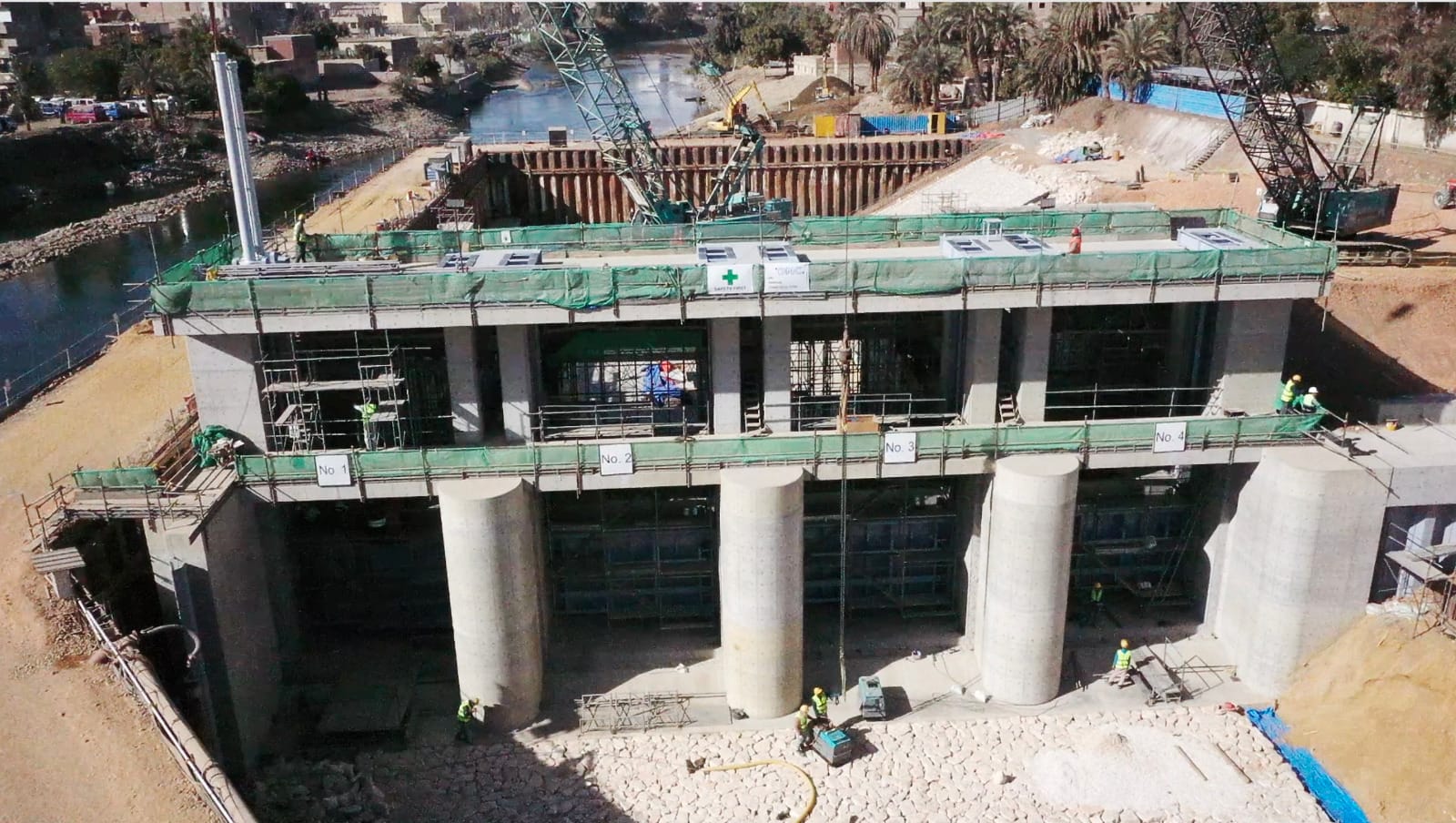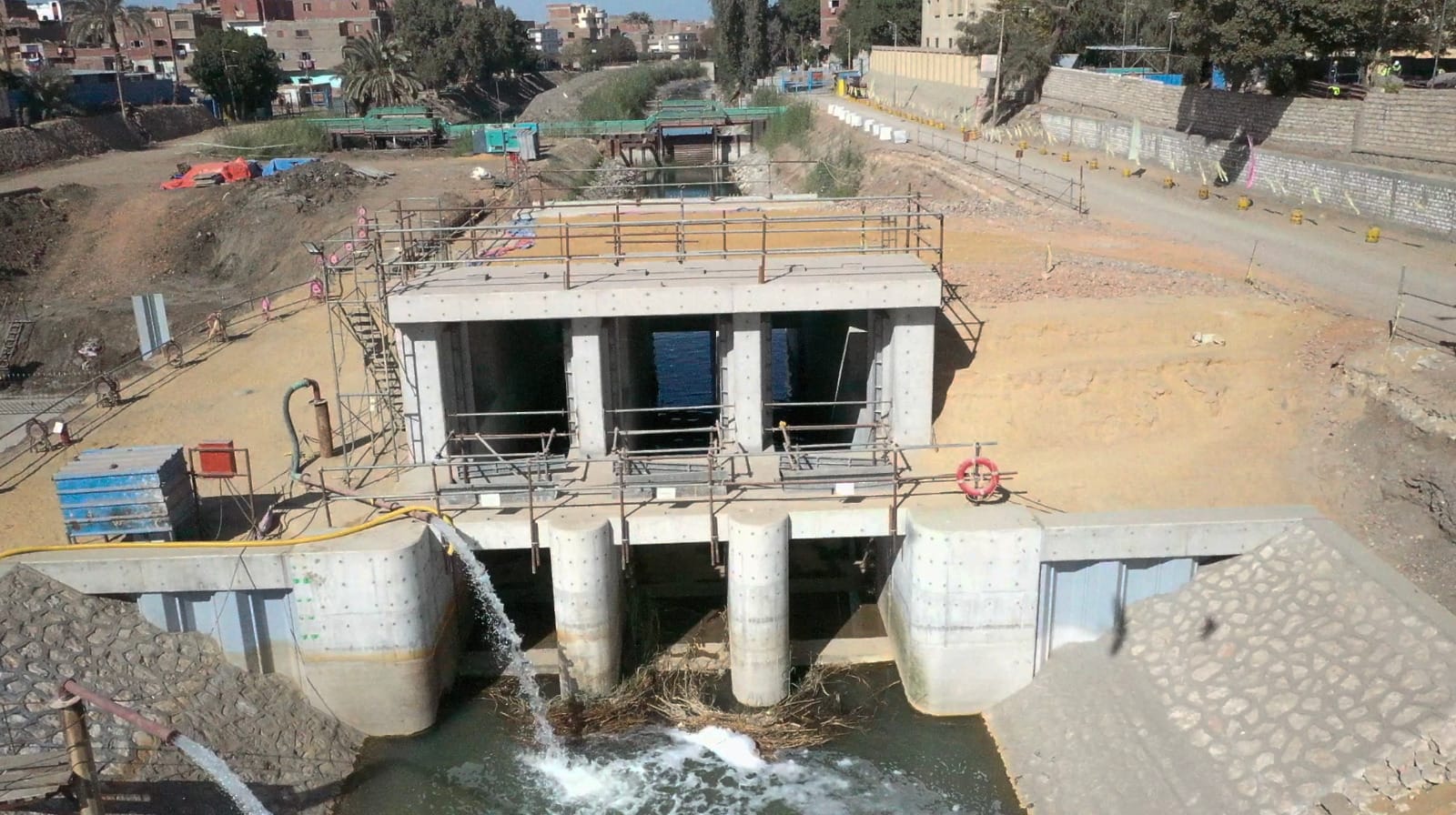 فى قنطرة الديروطية.. فقد تم الانتهاء من صب الخرسانة المسلحة لجسم القنطرة.