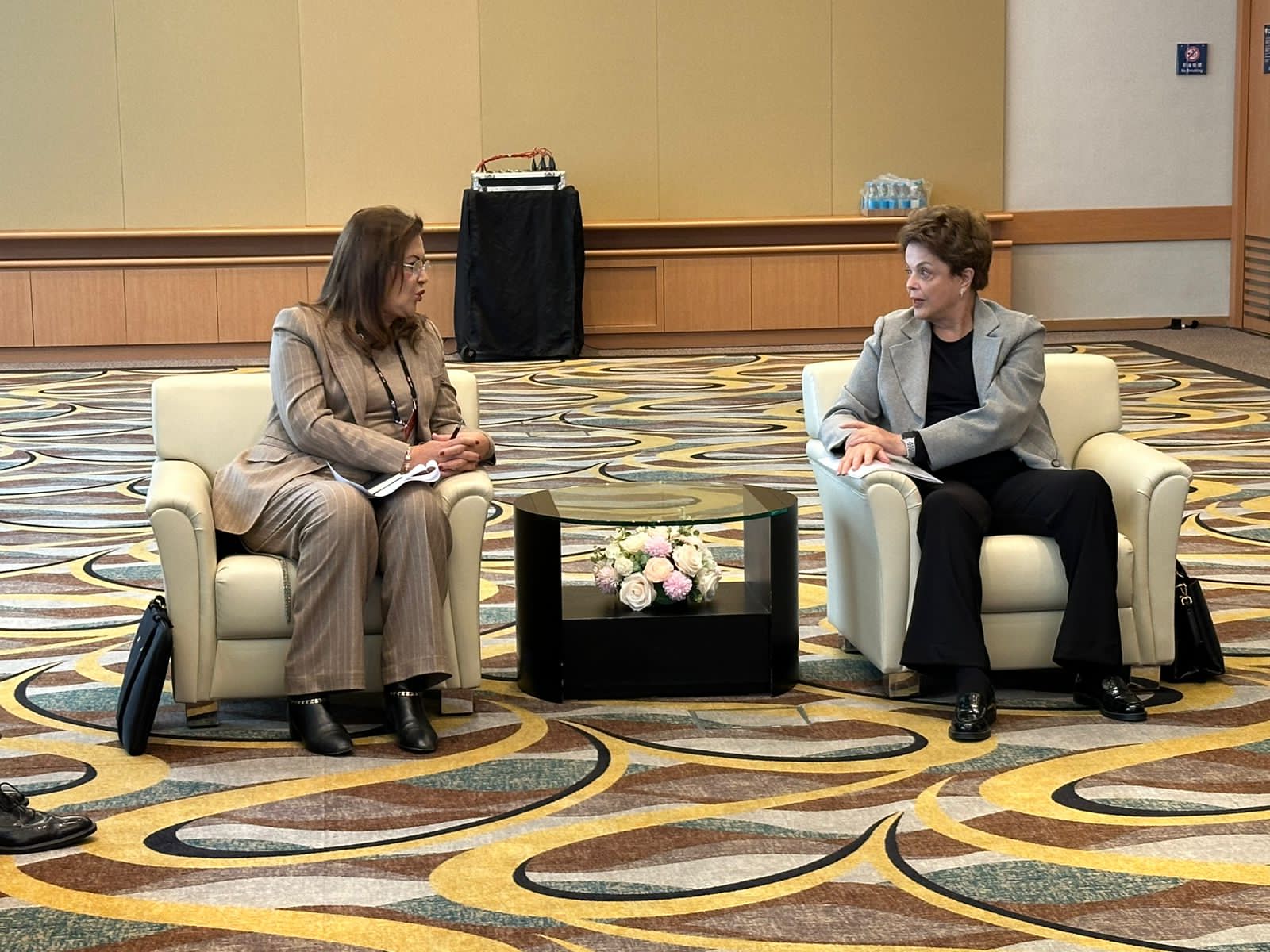 على هامش فعاليات المنتدى؛ التقت د. هالة السعيد، للمرة الأولى، مع ديلما روسيف، رئيسة بنك التنمية الجديد (NDB) التابع لمنظمة البريكس، حيث أكدت خلال اللقاء تطلع مصر إلى تعميق التعاون مع دول البريكس، مشيرة إلى أن هناك زيادة ملحوظة في واردات مصر من دول البريكس بنسبة تقدر بحوالي 33٪ مقارنة بعام 2020، كما ارتفعت صادرات مصر إلى دول البريكس بنسبة 75٪ مقارنة بعام 2020.