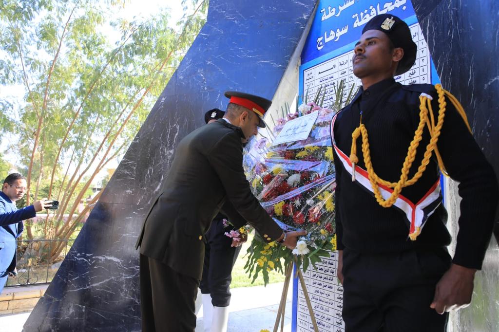 محافظ سوهاج ومدير الأمن يضعان أكاليل الزهور على النصب التذكاري لشهداء الشرطة
