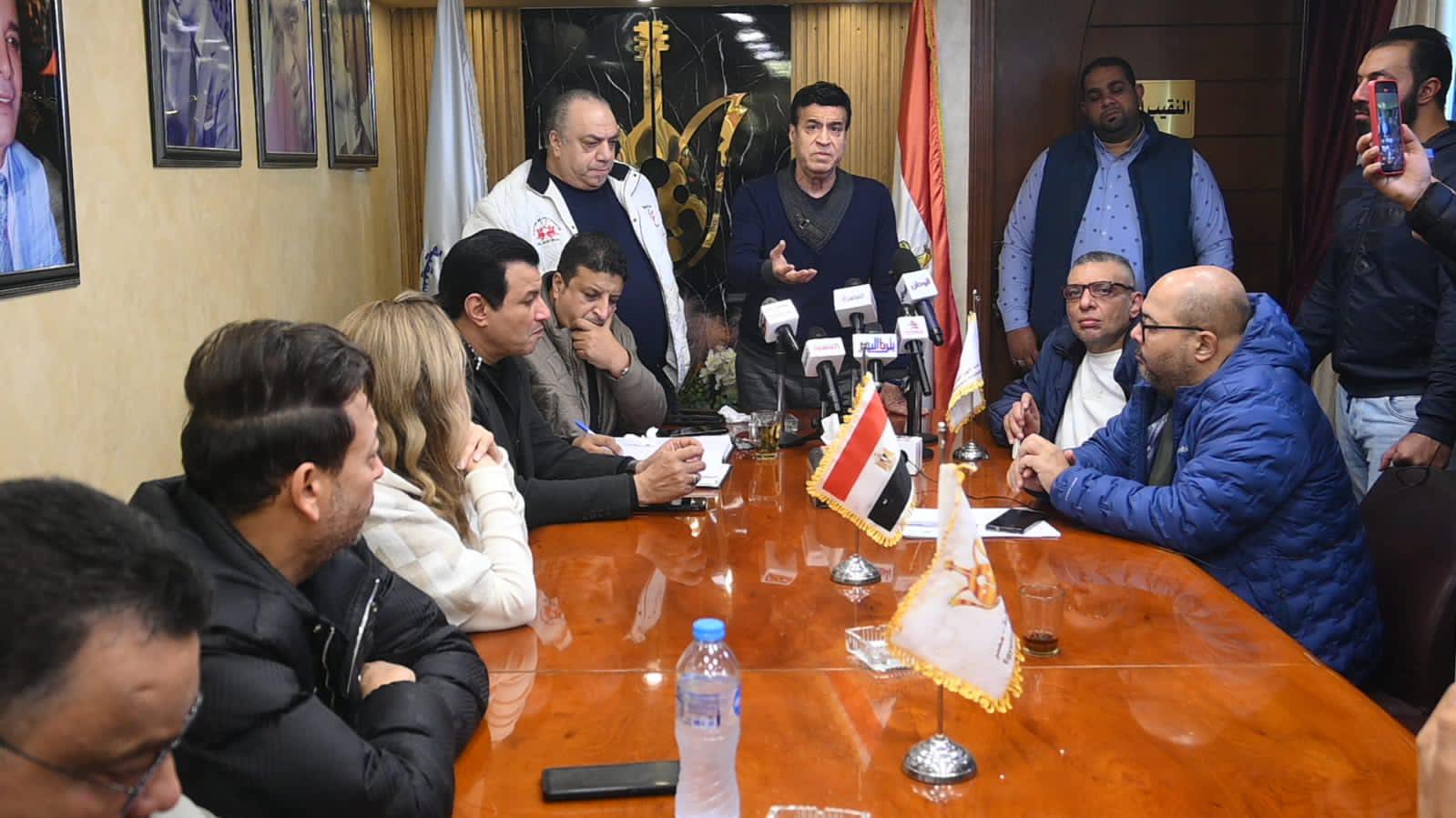 وأشار كلنا كأعضاء مجلس إدارة المهن الموسيقية سوف نتوجه إلى منزل نقيب الموسيقيين مصطفى كامل ونتناقش معه وماذا يريد تنفيذه، وكلنا ايد واحدة في النهاية