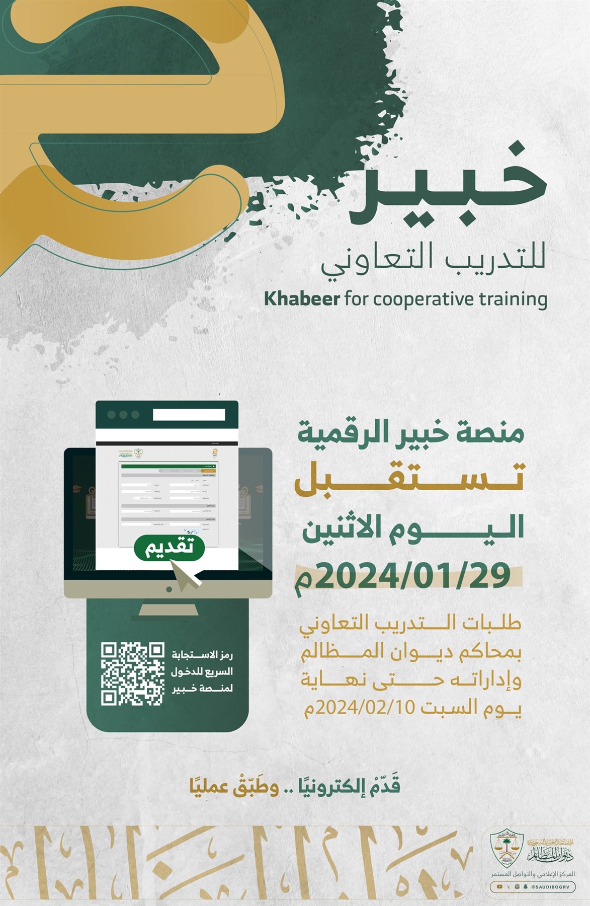 فتح ديوان المظالم باب التقديم على (برنامج خبير) للتدريب التعاوني للطلاب والطالبات الجامعيين وذلك في كافة محاكمه وإداراته بمختلف مناطق المملكة العربية السعودية.