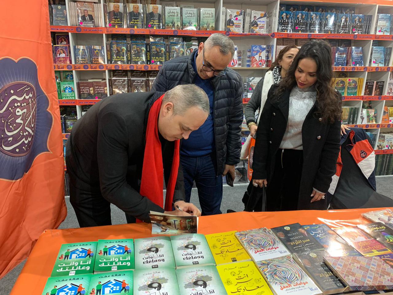 وقد وقع الفنان تامر عبد المنعم نسخ كتابه للجمهور الذين التقطوا معه الصور.