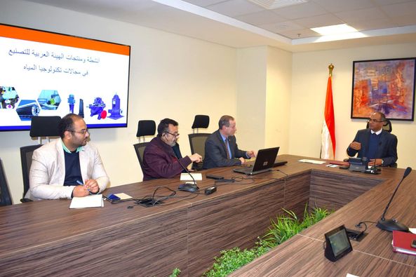 وخلال الاجتماع، تقدم مستشار رئيس الهيئة العربية للتصنيع، بعرض تفصيلي يتضمن منتجات المصانع التابعة للهيئة العربية للتصنيع، والتي تقوم بإنتاج المحركات والطلمبات والتجهيزات الخاصة بمحطات مياه الشرب والصرف الصحي ذات القدرات العالية لتلبية احتياجات السوق المحلية، موضحاً قدرة المصانع على توفير المخزون الكافي لمد المشروعات باحتياجاتها في إطار زمني يلبي الاحتياجات المتسارعة للدولة فى هذا المجال، دون الاعتماد على المنتج المستورد الذي قد يستغرق شهوراً لاستيراده.