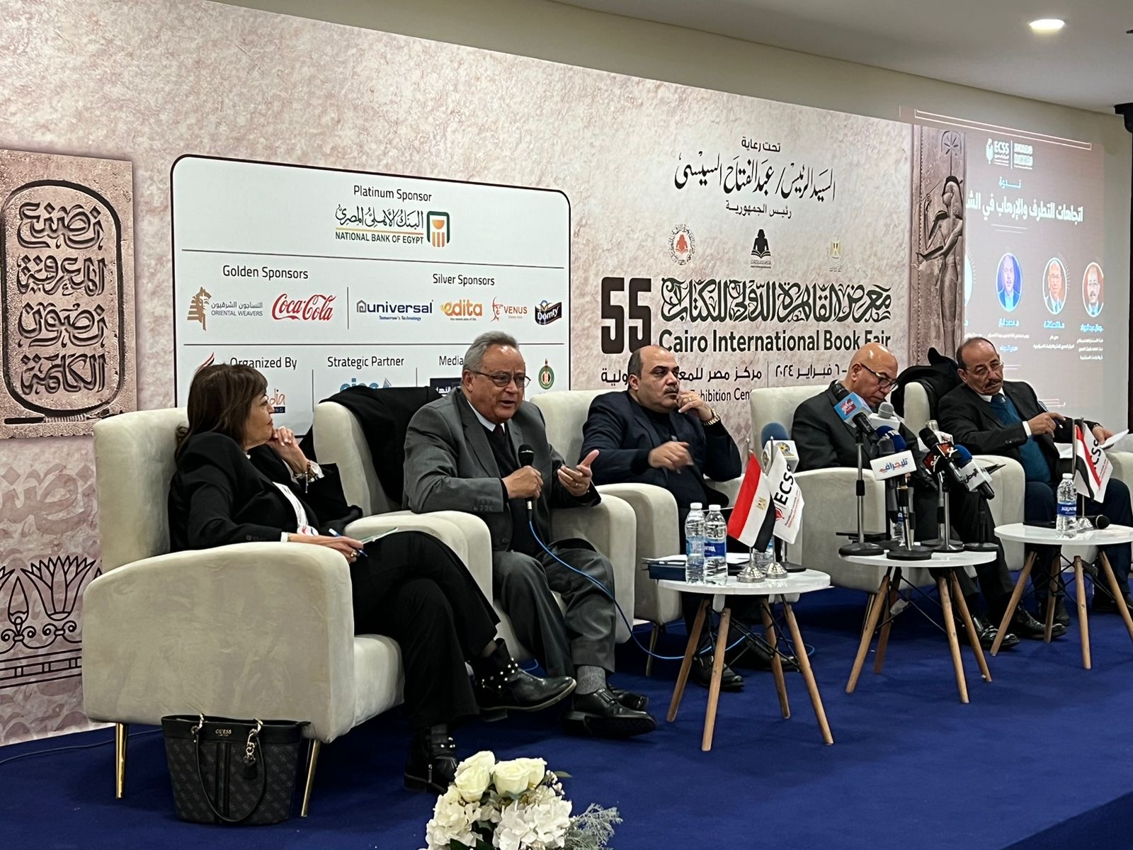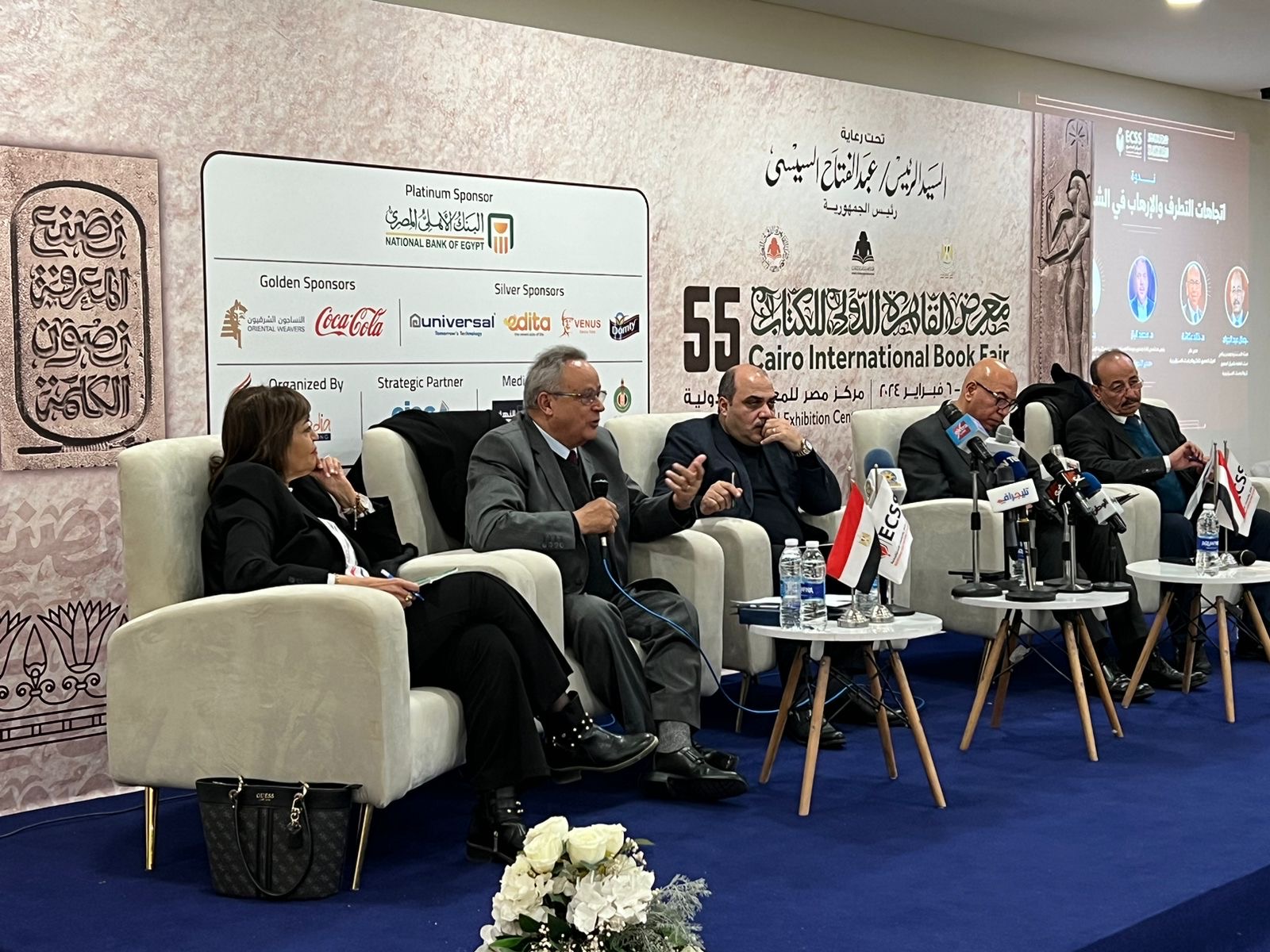 جاء ذلك خلال مشاركته في ندوة "اتجاهات التطرف والإرهاب في الشرق الأوسط" والتي نظمها المركز المصري للفكر والدراسات الإستراتيجية اليوم ضمن فعاليات معرض القاهرة الدولي للكتاب في نسخته 55، وذلك بحضور الدكتور خالد عكاشة؛ مدير المركز المصري للفكر والدراسات الاستراتيجية، والدكتور جمال عبد الجواد؛ عضو اللجنة الاستشارية ومدير برنامج السياسات العامة بالمركز المصري للفكر والدراسات الاستراتيجية، والدكتورة عزة فتحي، أستاذ مناهج علم الاجتماع بجامعة عين شمس، وأدارها الدكتور محمد الباز؛ رئيس مجلسي الإدارة والتحرير بجريدة الدستور.
