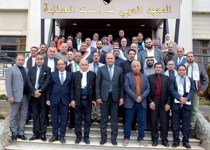 وطالب الجمل الحضور بفتح آفاقا جديدة في التعامل مع القضايا العمالية العربية وأن نسلك نهجا جديدا يبدأ من التفاعل والتواصل مع القضايا القطاعية في كل نقابة داخل وطنها.