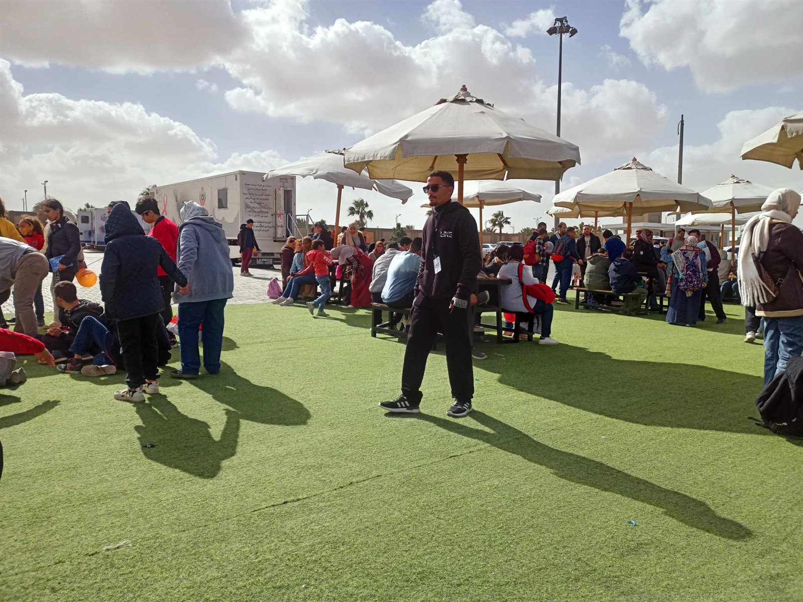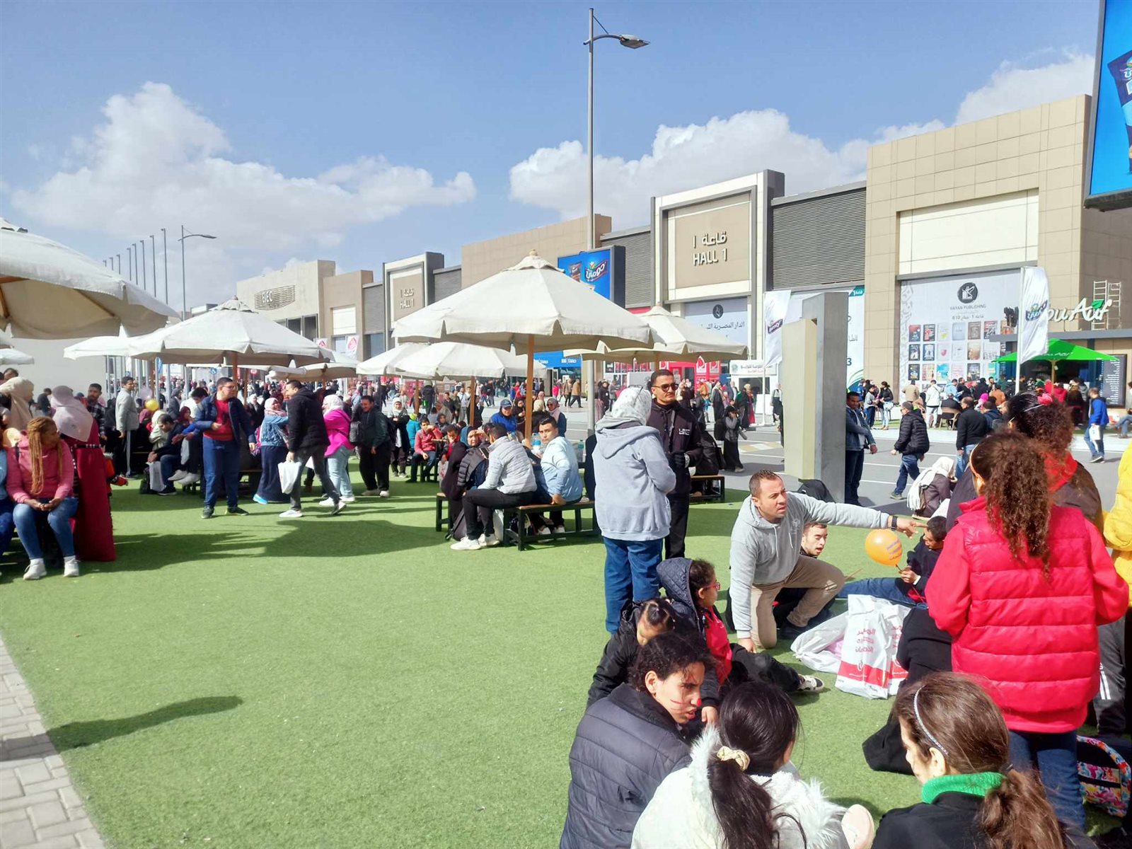 وتجمع الزوار في الأماكن المخصصة للاستراحة أمام قاعات عرض الكتب ودور النشر، في تجمعات عائلية وللأصدقاء، فضلا عن القيام ببعض الأنشطة والألعاب في روح من البهجة والسعادة.