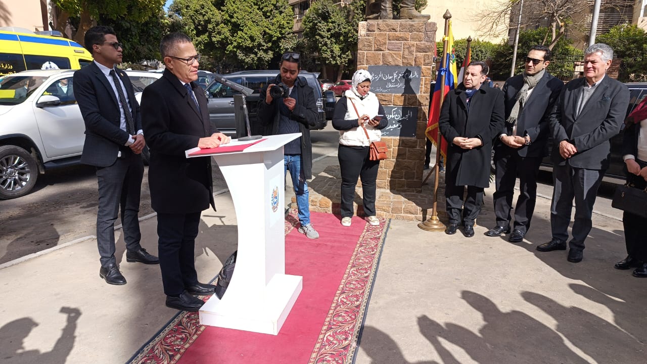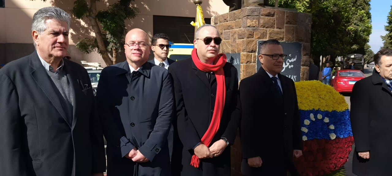 أحيا السيد إرنستو بييجاس بولخاك، وزير الثقافة الفنزويلي، خلال زيارته الرسمية إلى جمهورية مصر العربية، في يوم 30 يناير، مراسم وضع الزهور أمام النصب التذكاري للمحرر سيمون بوليفار، بوسط المدينة، القاهرة.