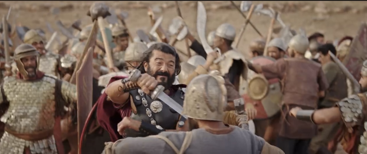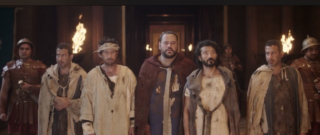 وأظهر الإعلان الترويجي لفيلم أهل الكهف، النجوم محمد فراج، خالد النبوي، محمد ممدوح في معركة كبيرة بحقبة زمنية قديمة .