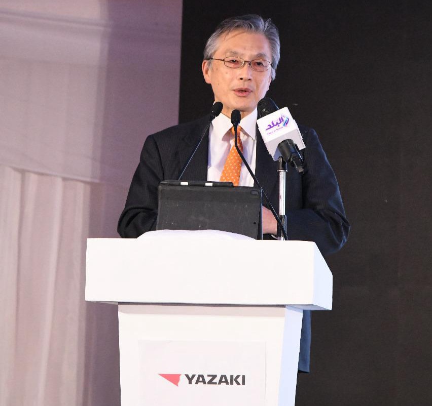 مضيفاً أن الفترة المقبلة ستشهد انطلاقة كبيرة وطفرة تنموية في إطار التعاون بين البلدين، في العديد من المشروعات المشتركة، بالإضافة إلى تطوير المشروعات القائمة حالياً.  فيما، أعرب رئيس جهاز التمثيل التجاري المصري بوزارة التجارة والصناعة، عن سعادته بالتواجد في هذا الحدث، والمشاركة في وضع حجر الأساس لمصنع شركة يازاكي اليابانية لإنتاج الضفائر والأنظمة الكهربائية للسيارات، ونقل تحيات المهندس أحمد سمير وزير التجارة والصناعة للحضور، مقدما التهنئة لمحافظة الفيوم وشركة يازاكي على هذا المشروع الذي يعد ثمرة من ثمرات التعاون المشترك بين الجانبين المصري والياباني، مما يسهم في نقل محافظة الفيوم لمرحلة جديدة من مراحل التنمية الصناعية والإنتاج.