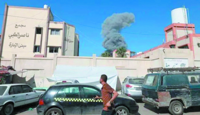 وحذرت الوزارة، من أن المولدات الكهربائية فى مجمع ناصر الطبى ستتوقف خلال يومين نتيجة نقص الوقود، فيما تتراكم النفايات فى أقسام وساحات المجمع، جراء رفض الاحتلال السماح بنقلها إلى الخارج، واستهدف طيران الاحتلال بغارات عنيفة محيط مجمع ناصر الطبّي، وطال القصف منازل تبعد عن المجمع عشرات الأمتار.
