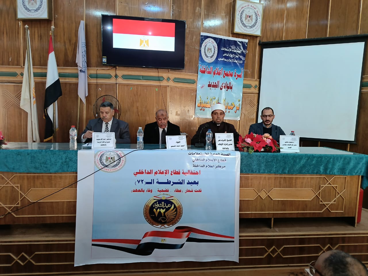 نظم مركز اعلام الداخلة بمحافظة الوادي الجديد، احتفالية بعيد الشرطة الثاني والسبعين وثورة 25 يناير تخللها ندوة تثقيفية والعديد من الفعاليات ضمن برنامج حافل لقطاع الاعلام الداخلي بالهيئة العامة للاستعلامات ومن خلال مراكز الاعلام التابعة بالمحافظات ، تحتفل الهيئة بالذكرى الثانية والسبعين لعيد الشرطة وثورة 25 يناير تحت شعار "عيد الشرطة عطاء تضحية وفاء بالعهد"، إدراكا منها لأهمية دور الشرطة المصرية في حفظ أمن واستقرار الوطن.